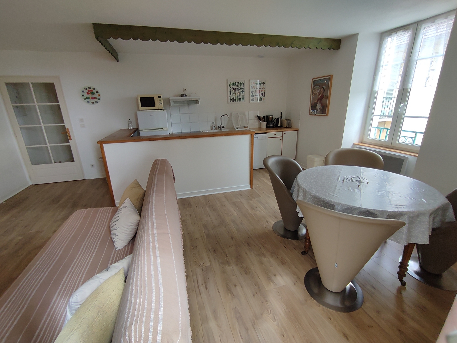 Appartement lumineux avec grande terrasse, 75m² au 1er étage, 2 chambre lit 140 et 2 lits 120, salle de bain baignoire, parc clos avec jeux, mobiliers de jardin, table ping-pong, parking privé. Animaux acceptés. A 200m des commercer, les plages à seulement 300m, situation géographique appréciée: à 10km les emblématiques Cascades du Hérisson et le site des 4 lacs -5 km la Frasnée et de la Fruitière 1900, 20km Lons-le-Saunier, Baume- -les-Messieurs, Château Chalon, Dole, Arbois, Salins les Bains