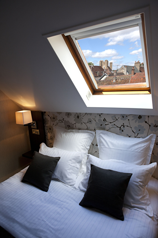 Au niveau supérieur : une chambre mansardée.