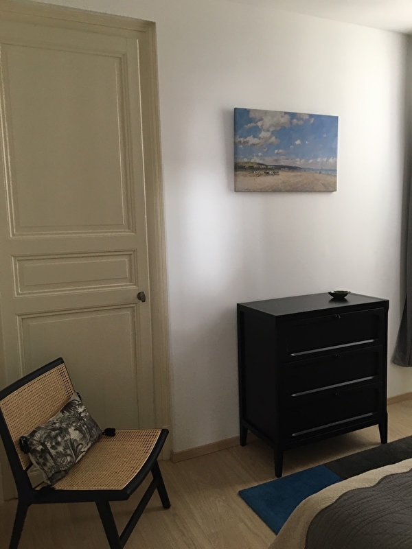 - une chambre séparée avec deux lits de 80x200 séparés, pouvant éventuellement être assemblés pour faire un lit de avec une commode et un placard/penderie