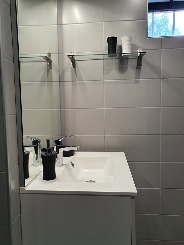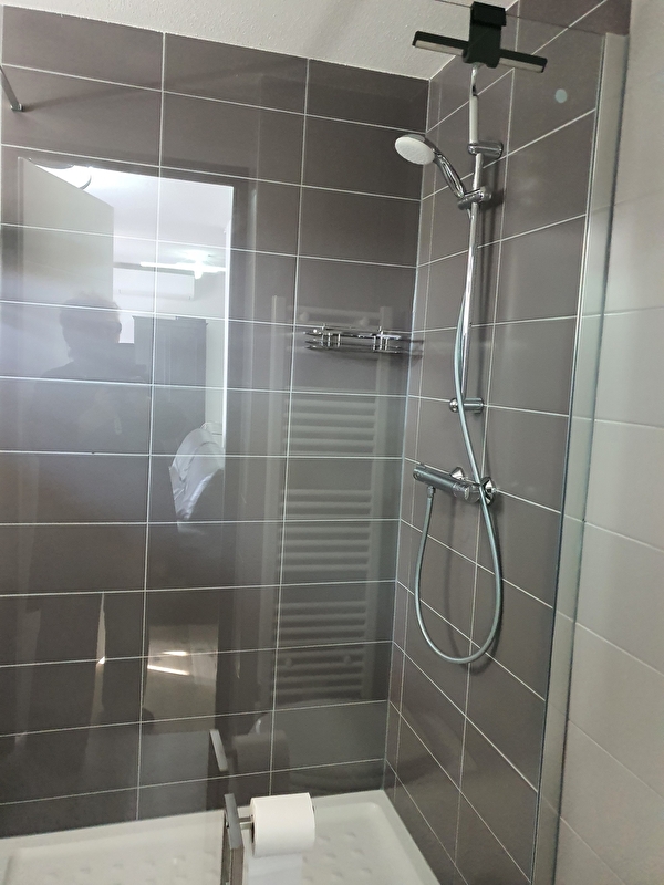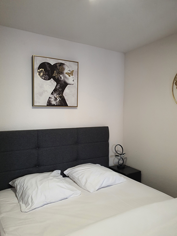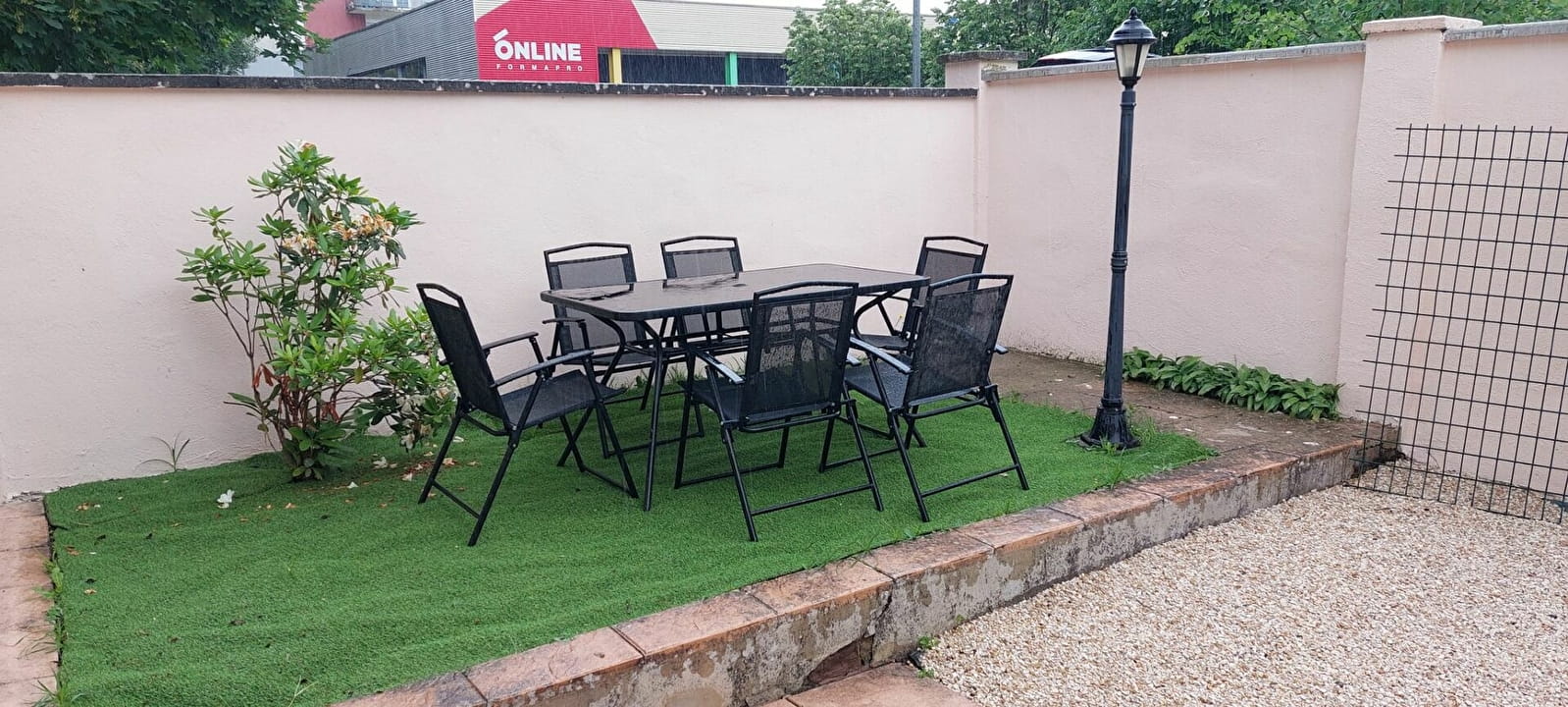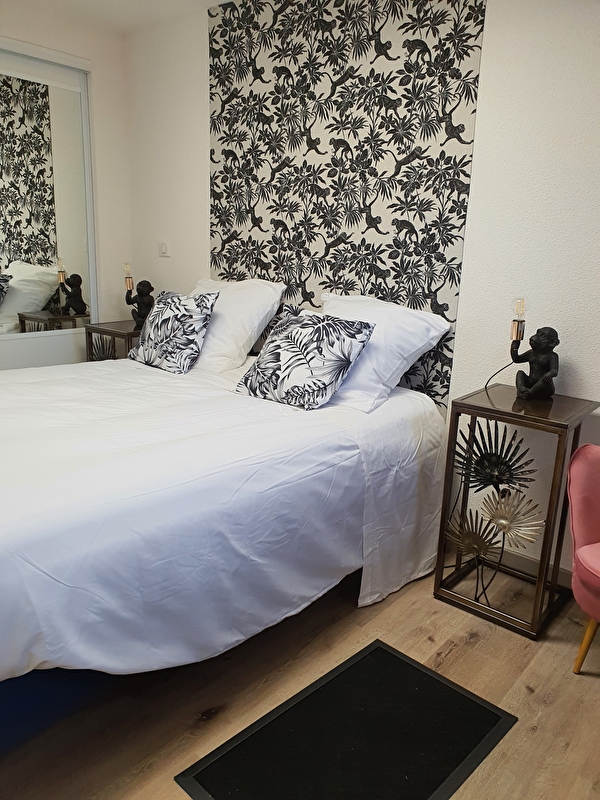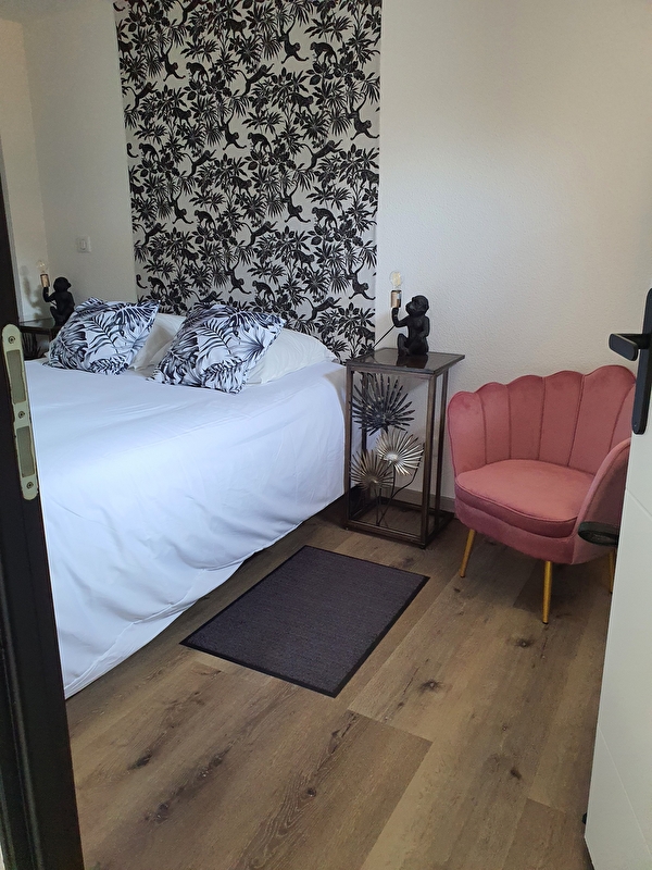 Appartement neuf lumineux tout confort, plain pied, à 120m des thermes et des commerces, au calme, climatisé, terrasse aménagée, parking et garage privé, espace vert privatif, petits chiens acceptés sans supplément.