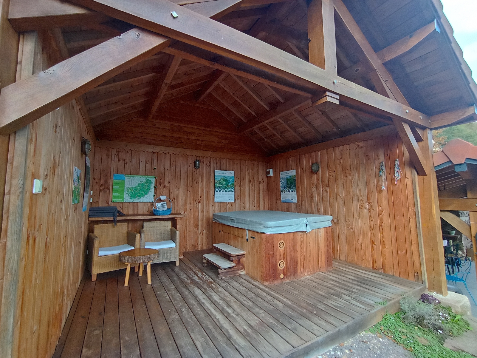 Villa de charme, entière, neuve, 97 m², avec SPA privatif, décoration soignée, cuisine toute équipée. Lit 160 x 200 ou 3 lits simples. 2 chambres. Chauffage inclus. Refroidissement naturel en été. Terrasse et balcon. Exposition Sud-Est. Baies vitrées face à la nature préservée. Repos assuré. Hygiène assurée. À 10 min des Thermes. Bel environnement naturel préservé.