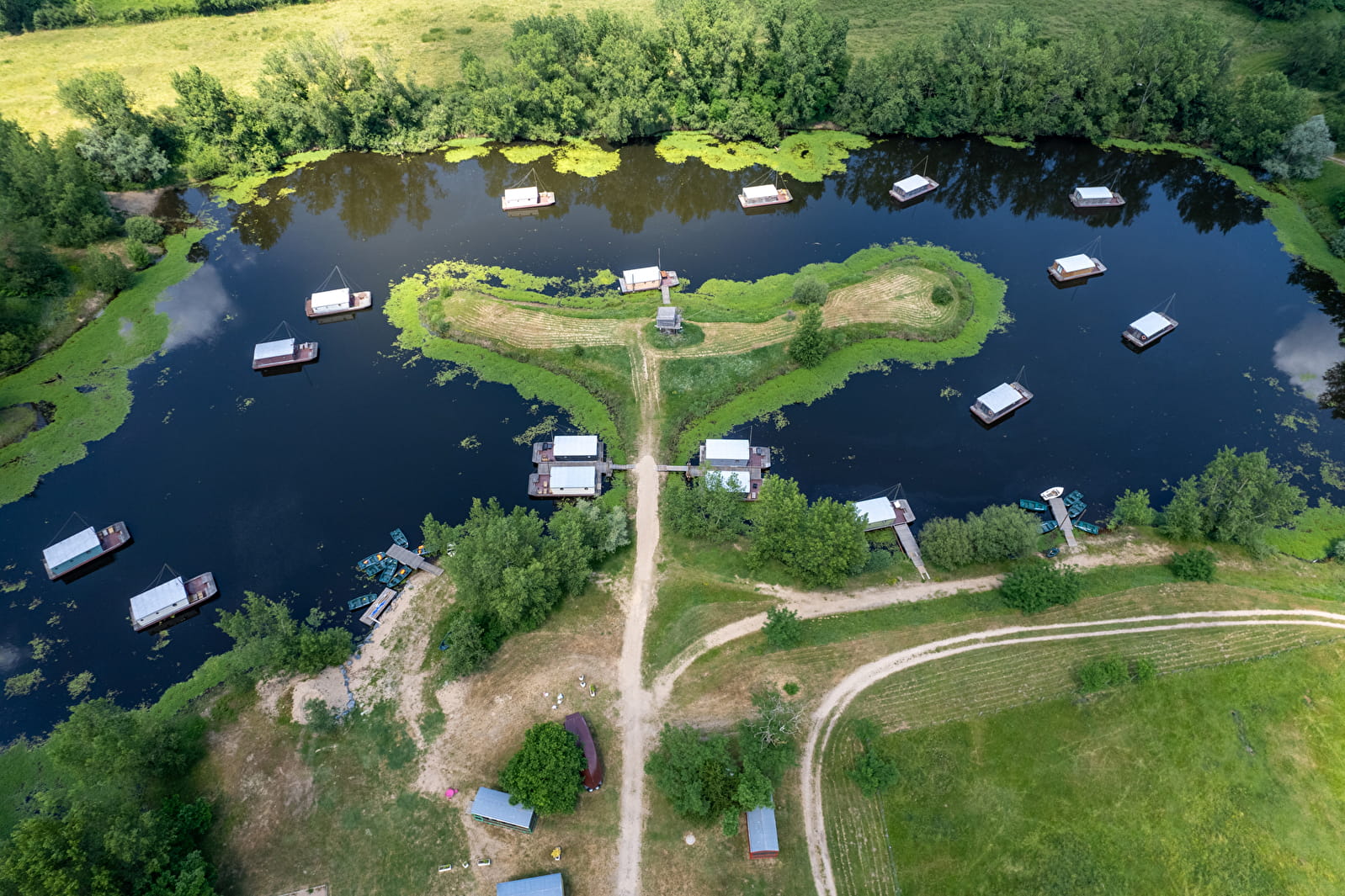 Aux confins de l’Auvergne et de la Bourgogne, le Village Toue du Domaine des Demoiselles, situé en bord de Loire, à une encablure de Digoin, dans une zone Natura 2000, vous attend pour un séjour insolite... Imaginez-vous amarré sur un étang paisible, à bord de votre Toue Cabanée. Avec son intérieur en bois tout confort et ses grandes baies vitrées, la Toue Cabanée est un bateau chargé d’histoire offrant une vue imprenable sur la nature. Huit toues sont au mouillage (ancrées au milieu de l'étang) et accessibles par une barque attribuée à chaque toue, quatre sont accessibles à pied sec depuis la chaussée de l'île aux pêcheurs. Trois roulottes de campagne sont également sur place. Le site offre un panel d'activités, de loisirs pleine nature et d'un réseau de voies itinérantes. A vélo sur la Voie Verte ou la piste cyclable de la Loire à vélo (Eurovélo 6), en bateau ou encore en scooter électrique vous pourrez découvrir des circuits itinérants qui vous mèneront dans les paysages vallonnés du Bourbonnais, du Brionnais et du Charolais, le long des canaux (canal de Roanne à Digoin, canal latéral à la Loire).