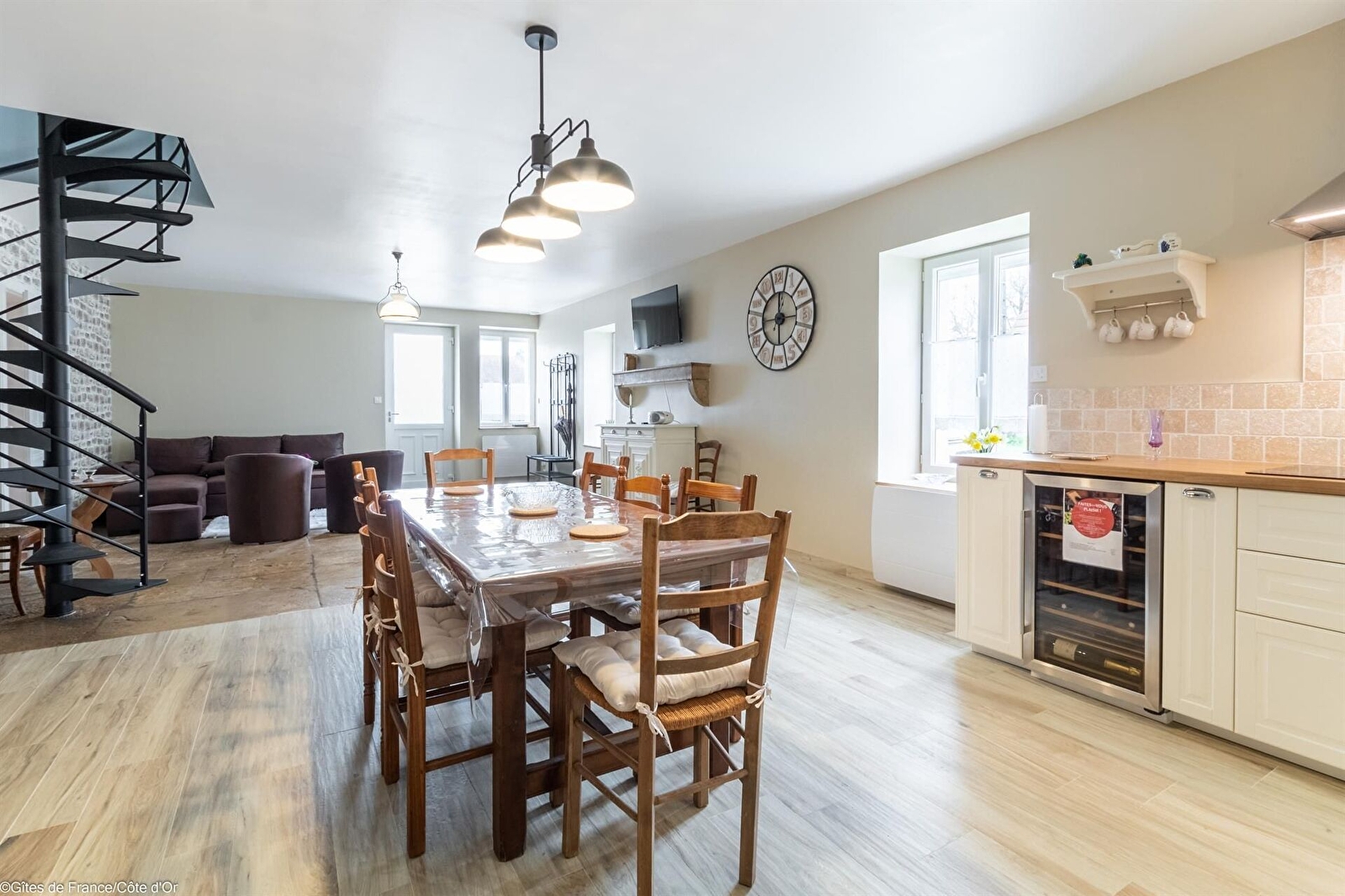 A quelques kilomètres de la capitale des vins de Bourgogne, gîte entièrement rénové et comprenant :