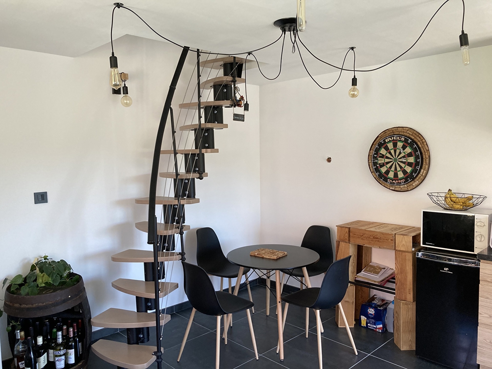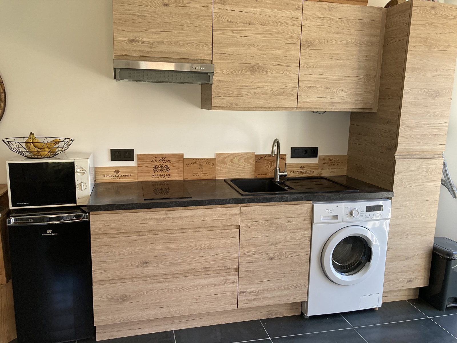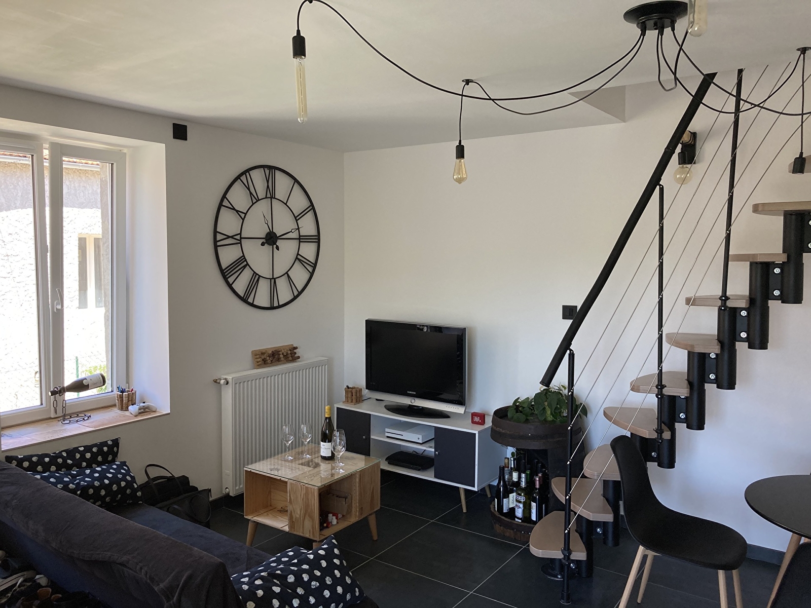 Bienvenue à Buxy en Sud Côte Chalonnaise, un sublime village viticole bordé de ses 1er Crus. Nous mettons à disposition notre maison fraîchement rénovée et meublée en grande partie avec du fait main autour du thème viticole. La maison fait 37m2 (Loi Carrez, 50m² au sol), comprend une terrasse et un joli petit terrain arboré d’arbre fruitier. Elle est en duplex avec une grande chambre à l’étage. Ses ouvertures donnent sur une superbe vue sur les 1er Crus de Montagny.