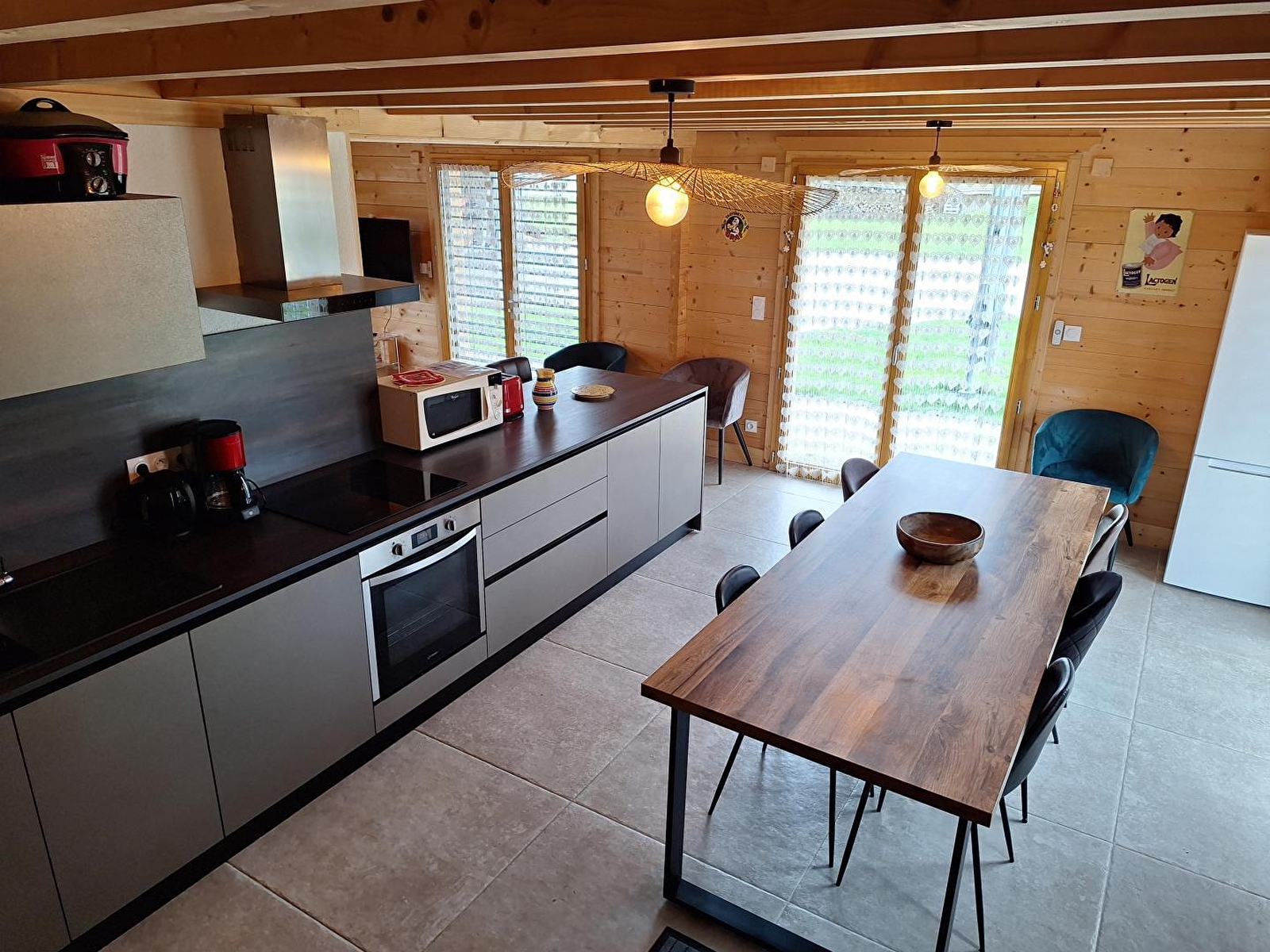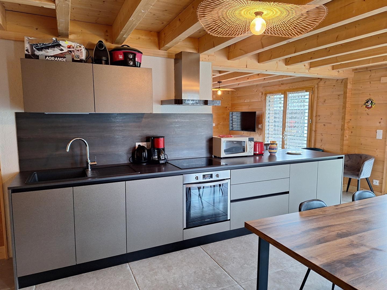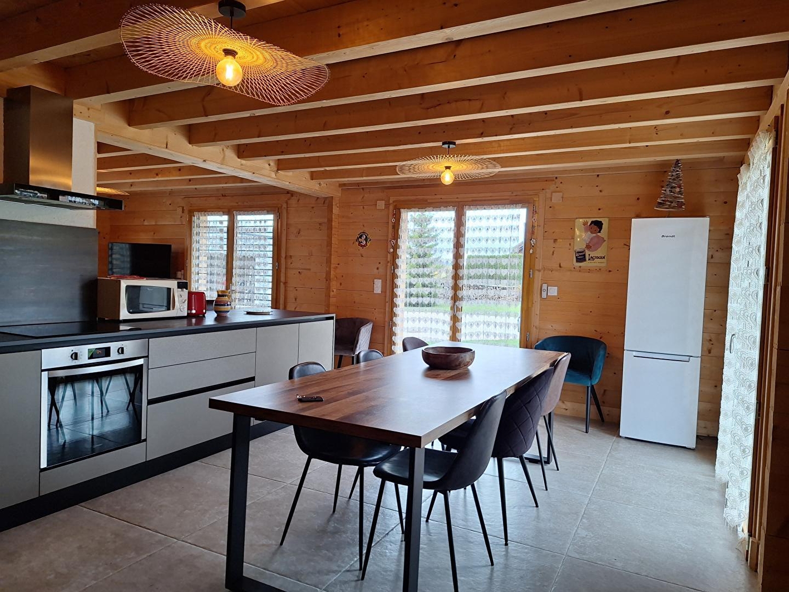 Au cœur du Parc Naturel Régional du Haut Jura, a proximité des pistes de ski ainsi que de la région des Lacs, se trouve ce très beau chalet indépendant neuf. Au rez-de-chaussée, vaste pièce de vie avec cuisine équipée, espace salle à manger et coin salon avec canapé et TV, une chambre avec 1 lit double (160*200) une salle d'eau avec douche et 1 WC indépendant,. A l'étage : mezzanine avec espace détente, 2 chambres doubles avec chacune 1 lit 160*200 et une chambre avec 3 lits simples (90*190), salle d'eau avec douche et WC. Côté extérieur, vous pourrez profiter d'une terrasse avec salon de jardin et barbecue. Garage.