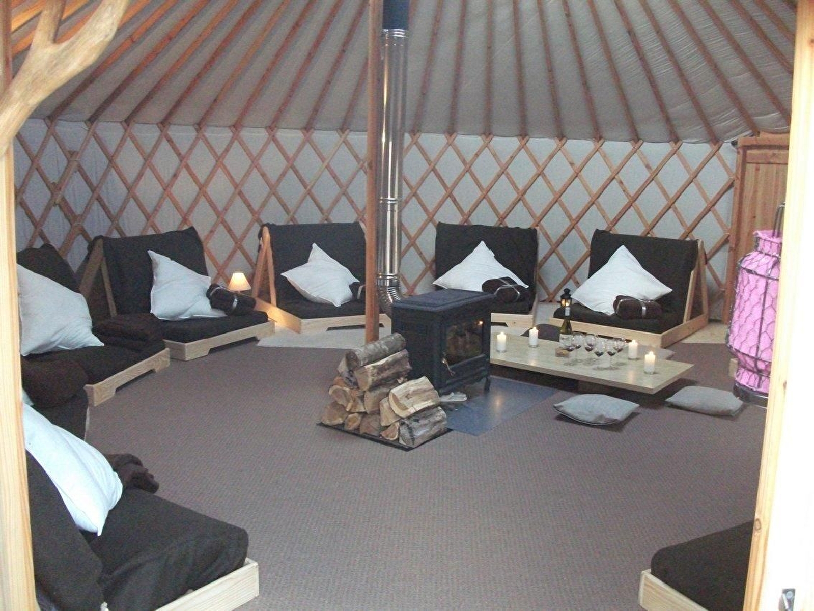 PAS DE CUISINE ET DE WC DANS L’HEBERGEMENT. Les repas, en option, peuvent être servis dans la yourte centrale (réservation auprès du propriétaire au moins 48h à l’avance)
