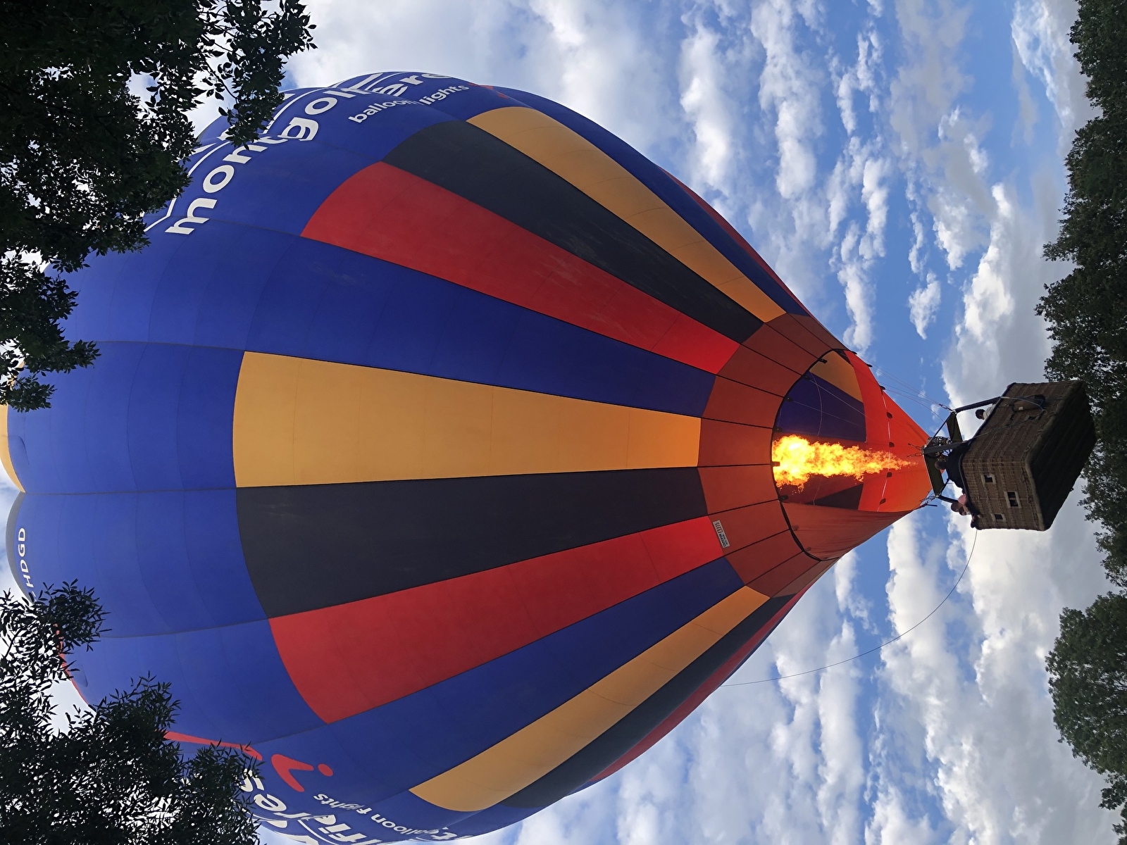 Baptême de l'air en montgolfière d'avril à fin octobre, au lever ou au coucher du soleil selon la période et le site d'envol choisi.