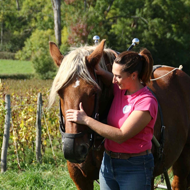Nous exploitons 5 hectares de vigne (chardonnay, gamay et pinot noir) certifiés agriculture biologique nous travaillons au rythme du calendrier lunaire et labourons l’ensemble de nos vignes avec nos trois chevaux Comtois.