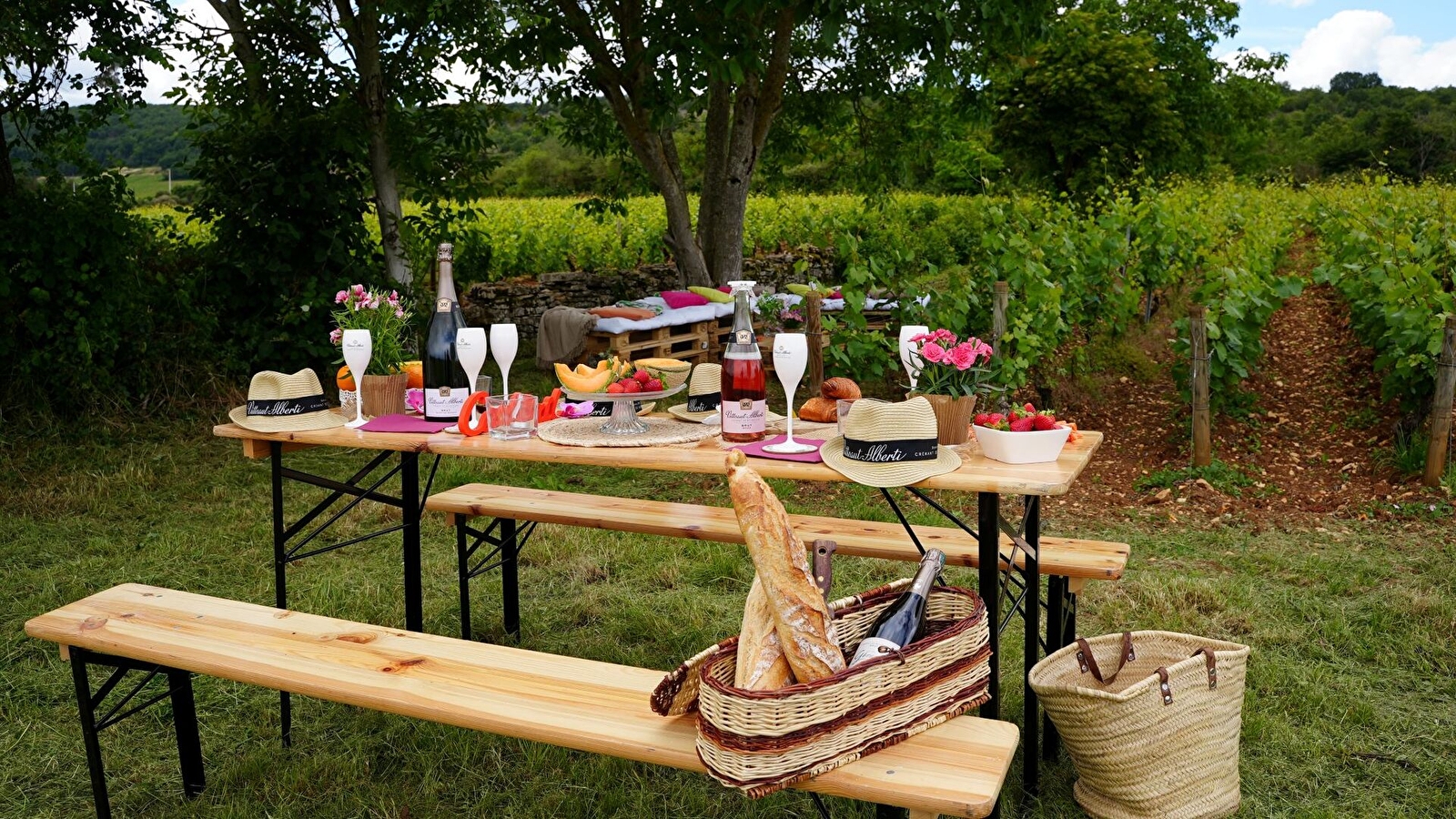 D'avril à septembre, profitez de pique-niques gourmands dans nos vignes, combinés à une visite et dégustation pour un moment convivial à partager en famille ou entre amis.