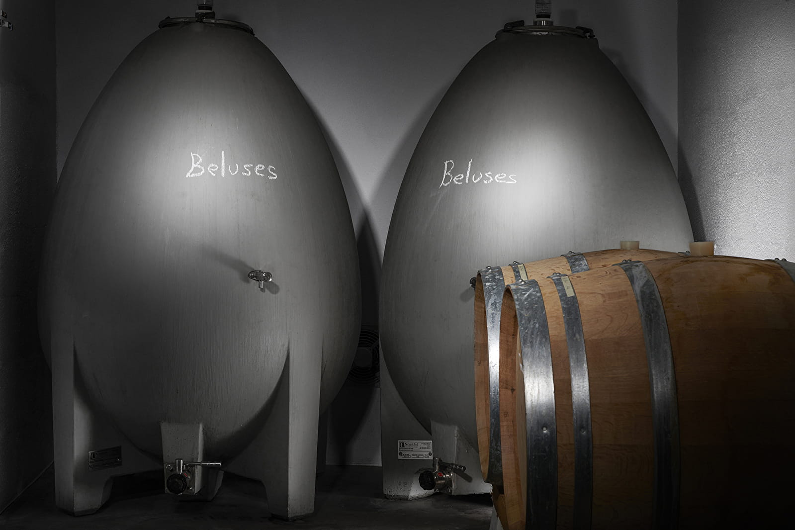 Les vins y sont vinifiés en cuves en acier, en fûts de chêne et en œufs en béton.