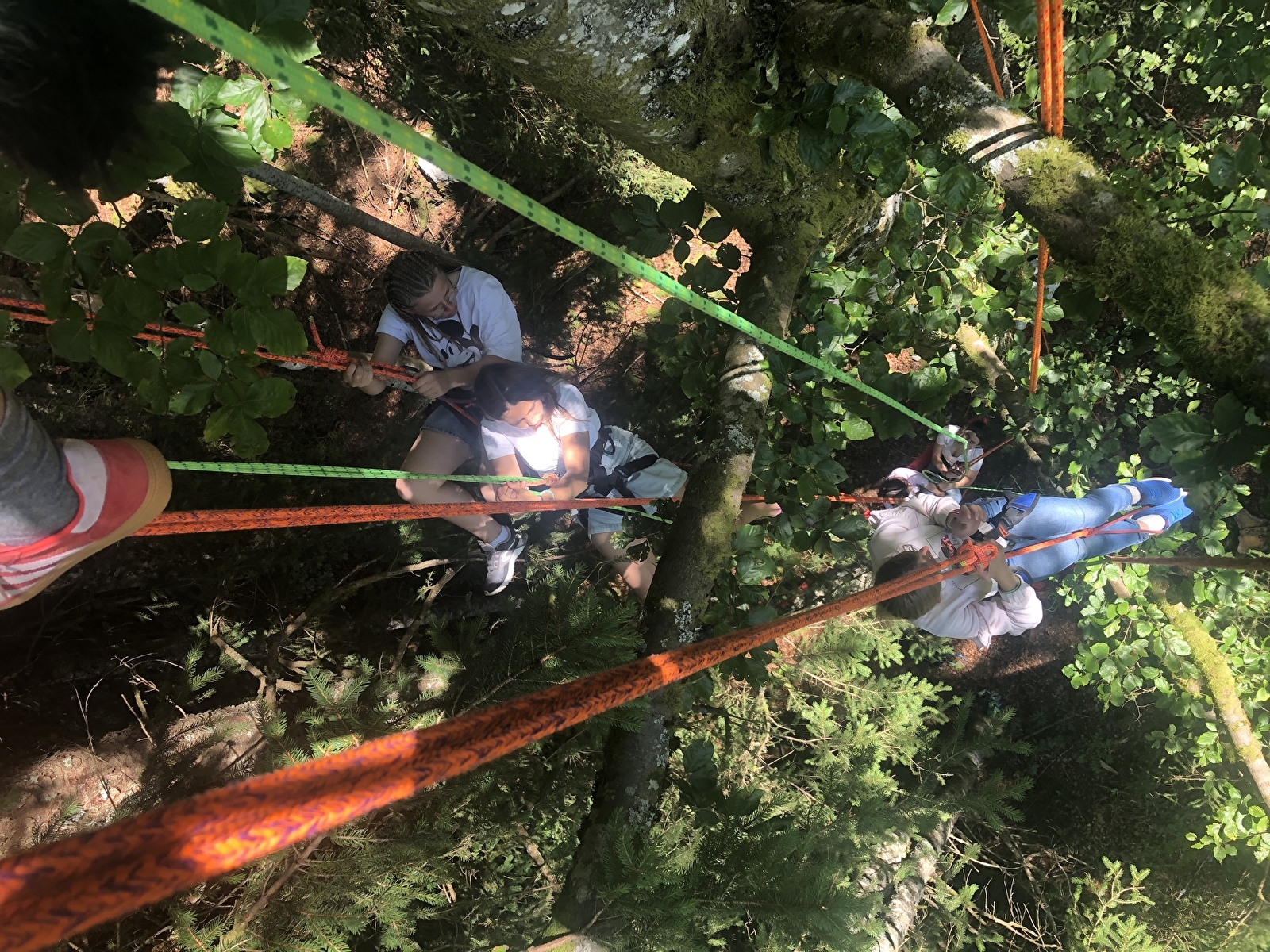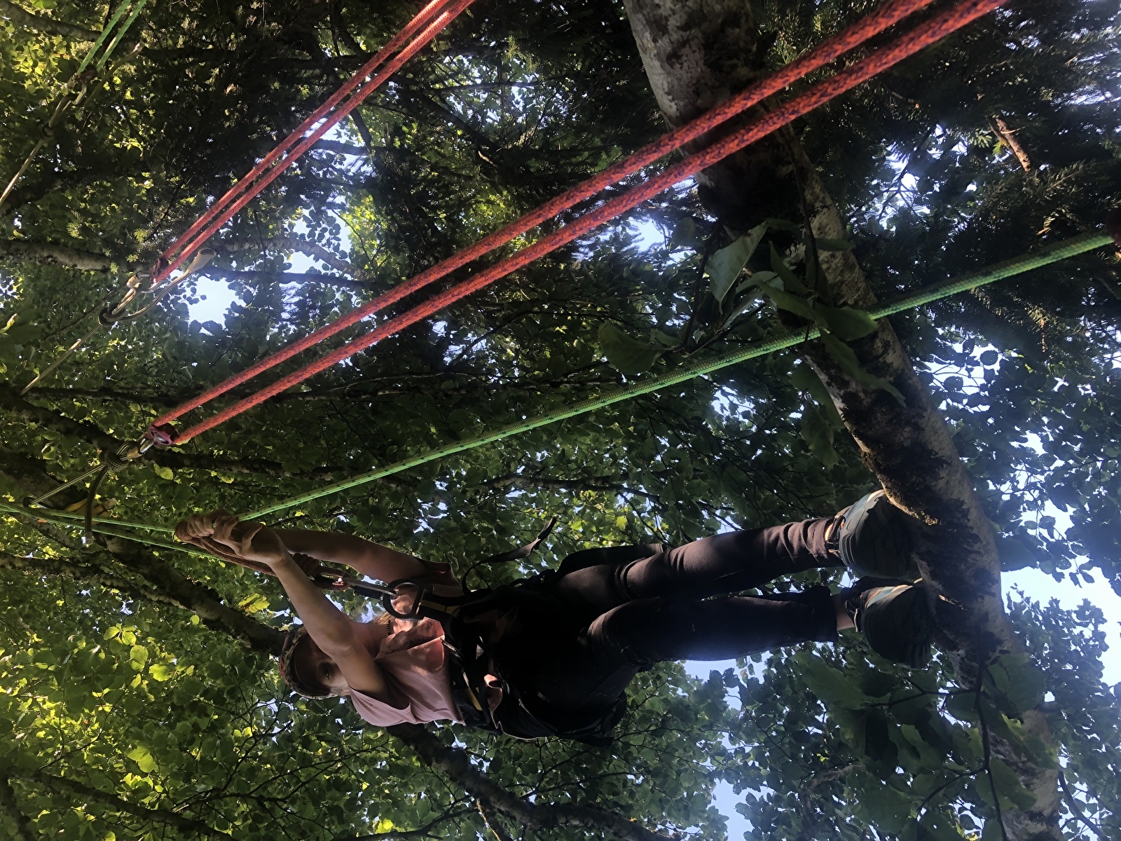 Au menu Cordes de déplacement auto-assurée, voies de moulinettes, hamac, plateforme perchés, tree-line et divers ateliers sensations