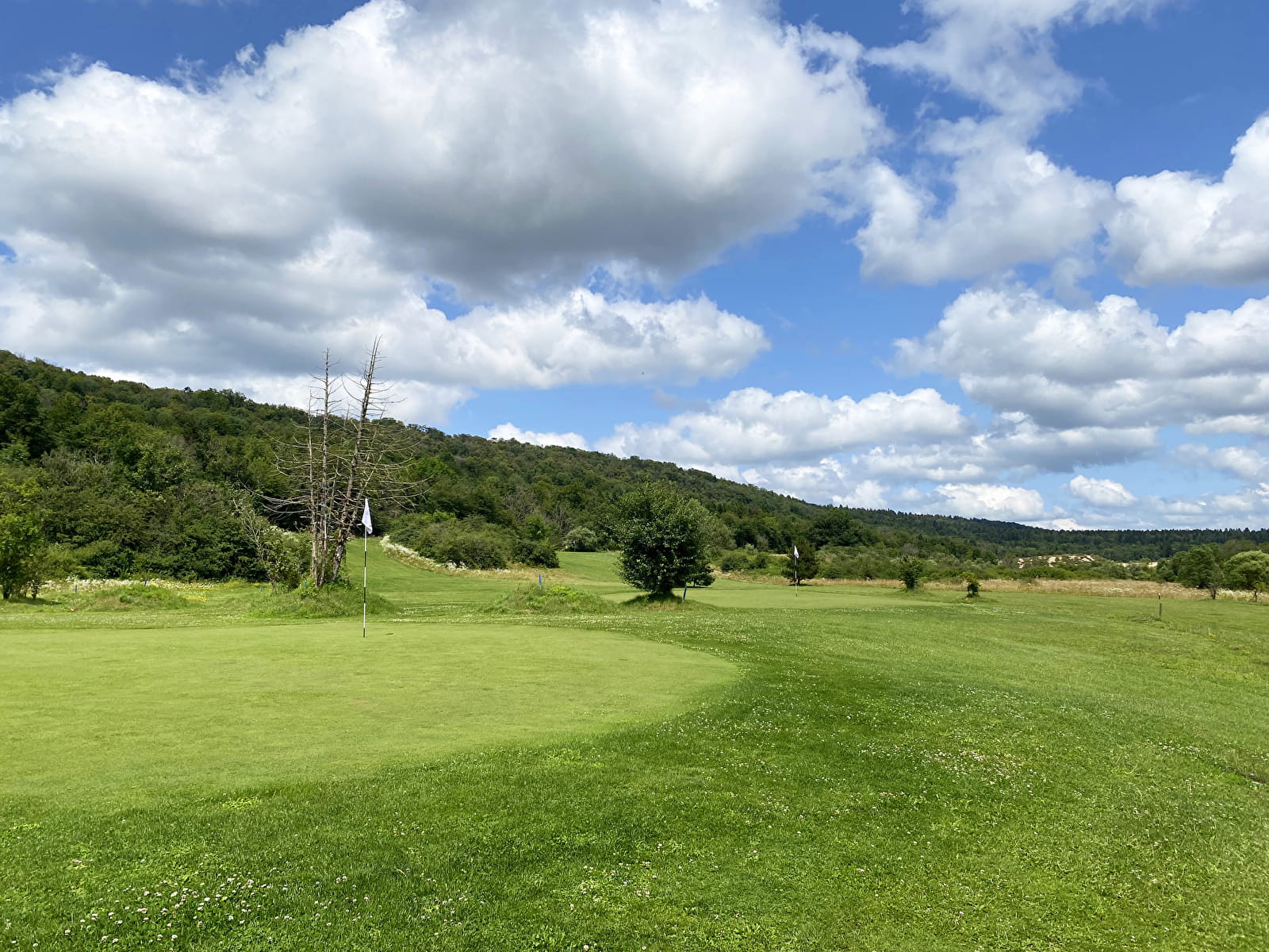Situé à l’épicentre d’un réseau de sentiers de randonnée, ce 8 trous dont les plans d’eau reflètent la flore sauvageonne est situé à flanc de coteau du massif forestier de la « côte de l’Heute ». À l’horizon, le regard se pose sur les montagnes du Haut-Jura. Les effluves de menthe sauvage, le coassement des grenouilles, le chant du coucou et, parfois même, l’apparition magique d’un chevreuil, accompagnent les joueurs tout au long du parcours.
