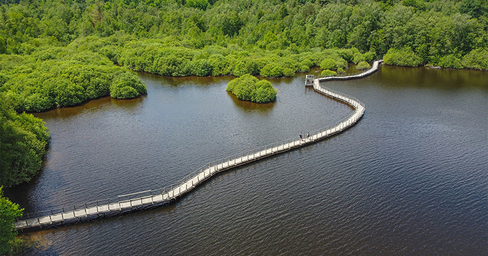 Ce circuit emprunte le chemin de ronde du lac en longeant les berges. Le sentier est équipé de passerelles en bois qui permettent de faciliter le passage des zones marécageuses et de découvrir, au fil de la balade, les îles, l'ancienne voie du Tacot.. et d'apprécier et de comprendre la richesse de l'écosystème du site.