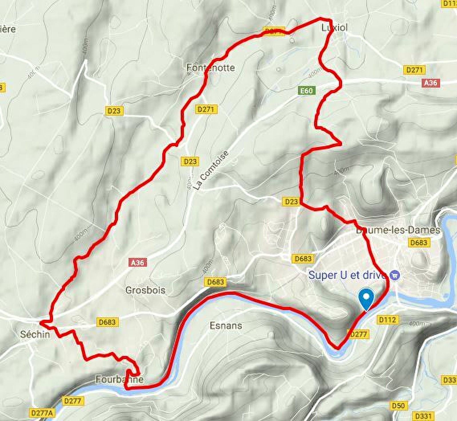 Boucle facile empruntant les rives du Doubs puis reliant les villages de Fourbanne, Séchin, Fontenotte et Luxiol.