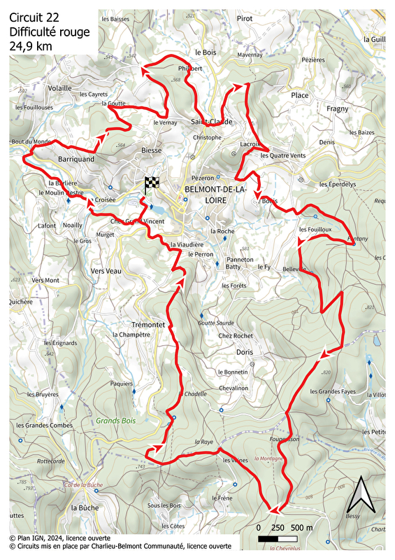 Itinéraire VTT : circuit 22 rouge, base Belmont-de-la-Loire