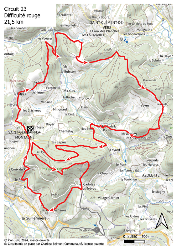 Itinéraire VTT : circuit 23 rouge, base Belmont-de-la-Loire
