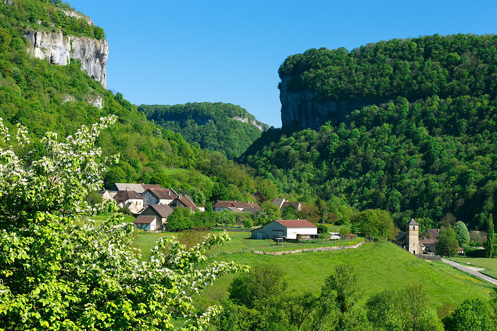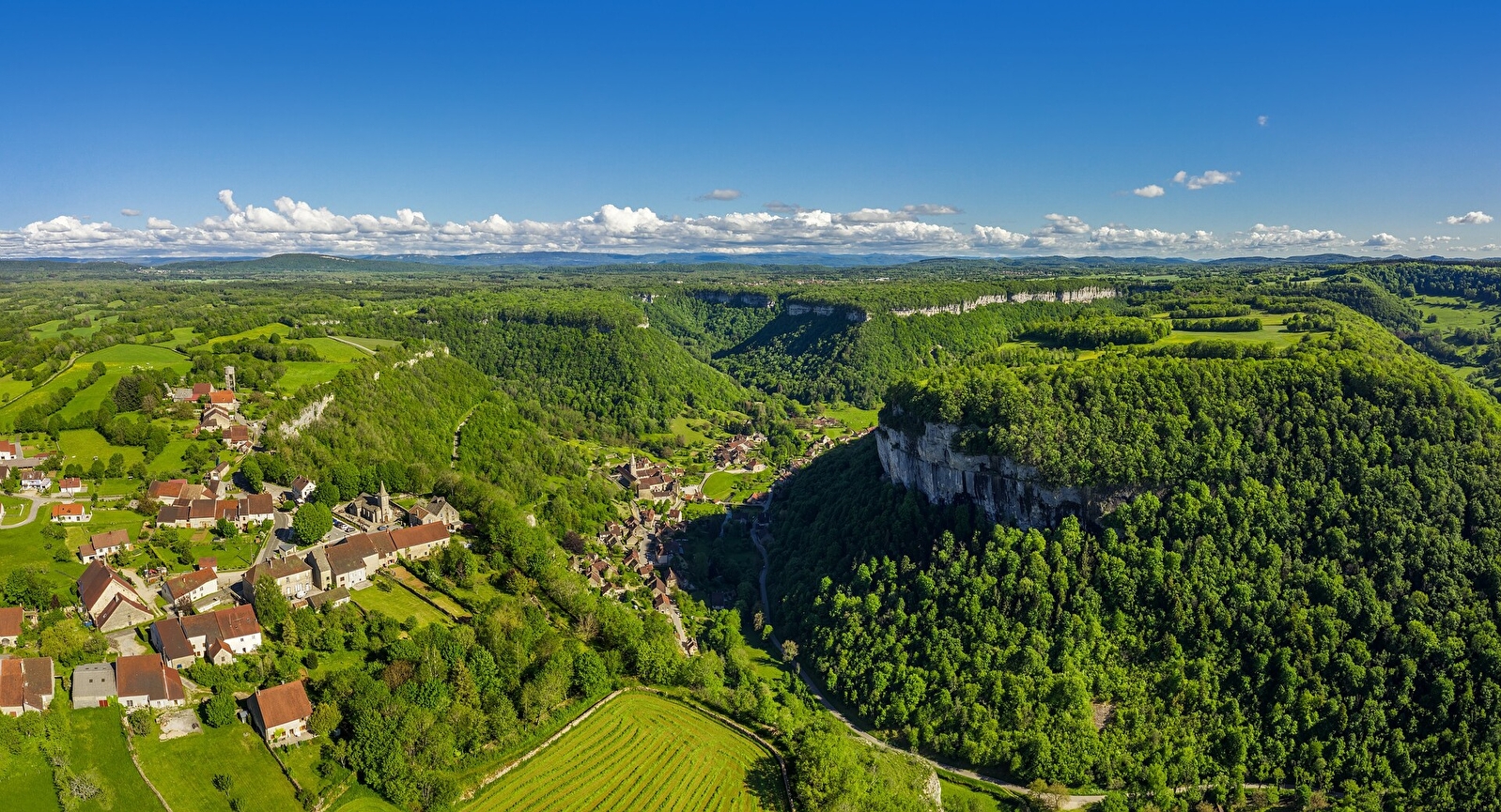 Le circuit entraîne le VTTiste aguerri à Baume-les-Messieurs, un des plus beaux villages de France dominé par de géantissimes falaises. La commune se niche au milieu de trois reculées typiques du paysage jurassien. Ces dernières sont à découvrir depuis le belvédère du joli village perché de Granges-sur-Baume. Ce parcours, majoritairement roulant, présente une descente rapide dans la reculée à aborder avec prudence puis une longue montée vers Sermu.Suivre le balisage n°14 noir