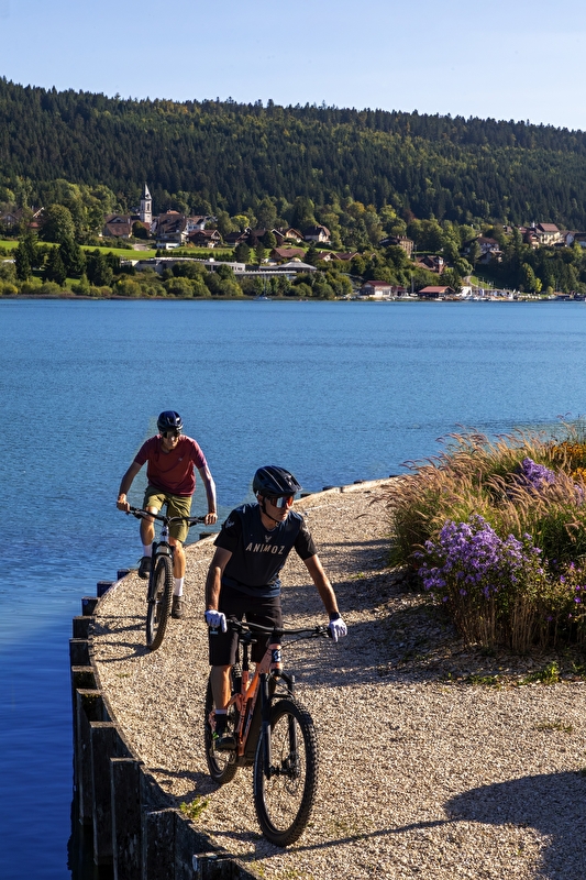 Le Tour du Lac Saint-Point en VTT offre un parcours scénique et ludique, accessible à la plupart des pratiquants, avec des passages très amusants en forêt et de beaux points de vues sur le lac.