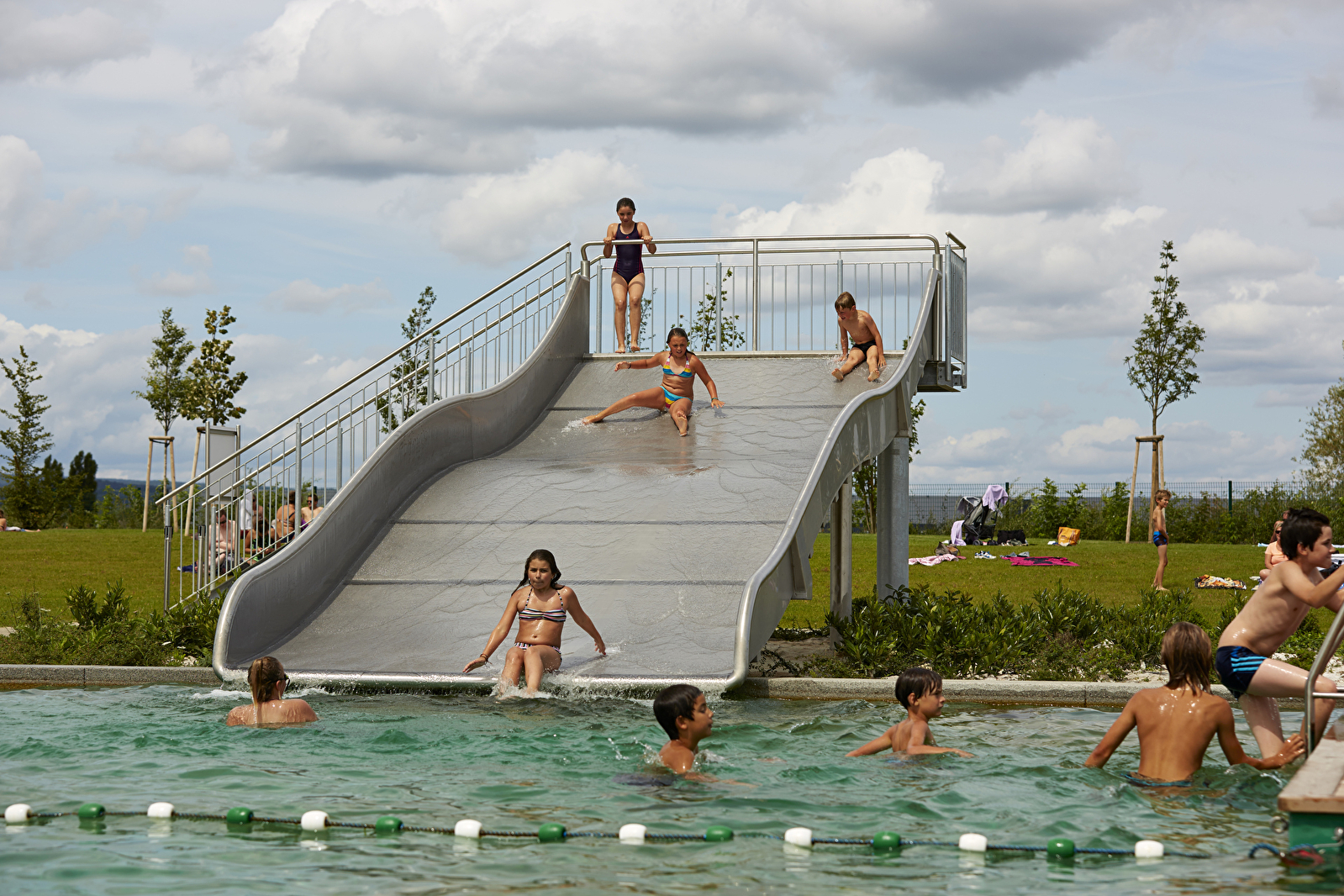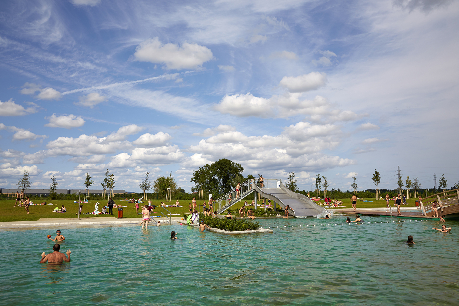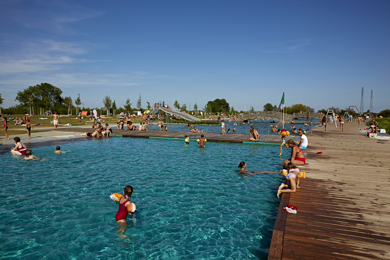 Beaune Côté Plage est une baignade à filtration naturelle de 3 000 m² avec 4 bassins, toboggan et plongeoirs !