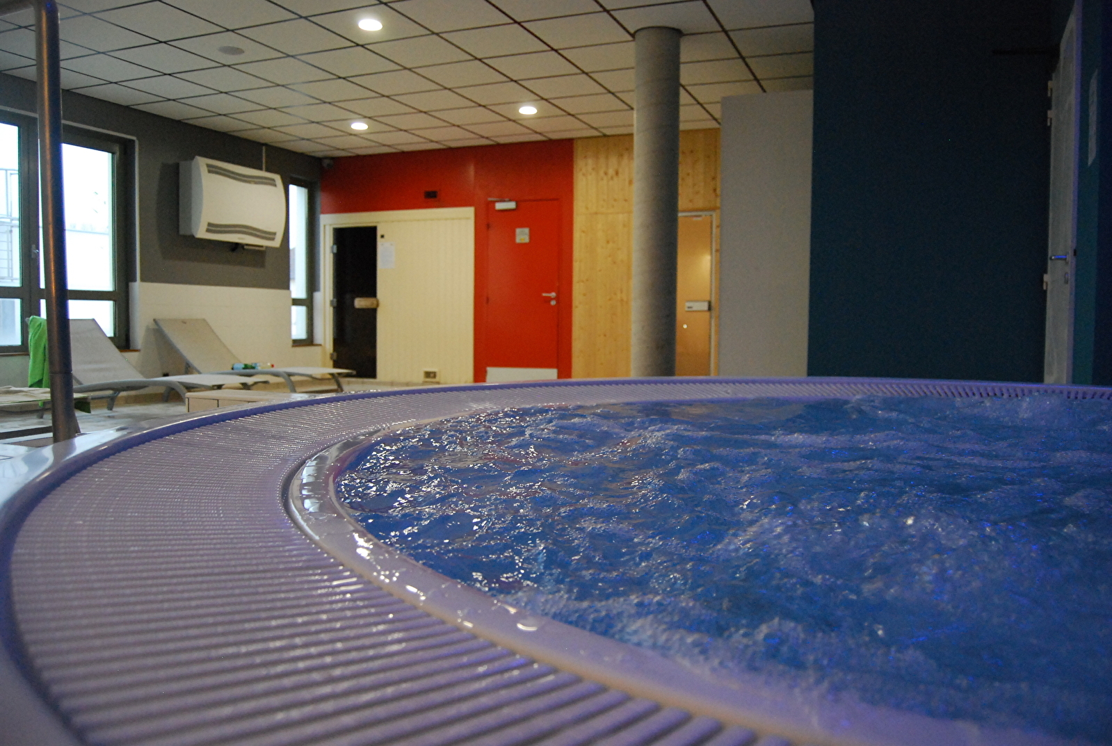 un bassin ludique d’une profondeur de 0m40 à 1m30 équipé d’un banc à bulles, de jets, d’une rivière à contre courant.