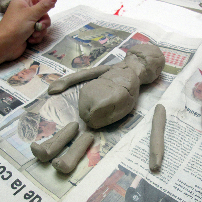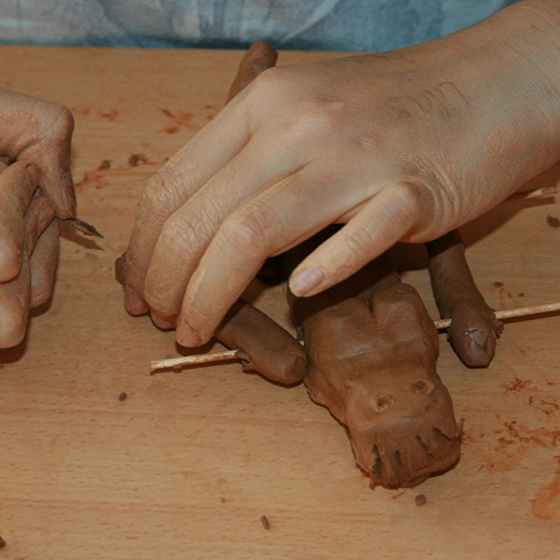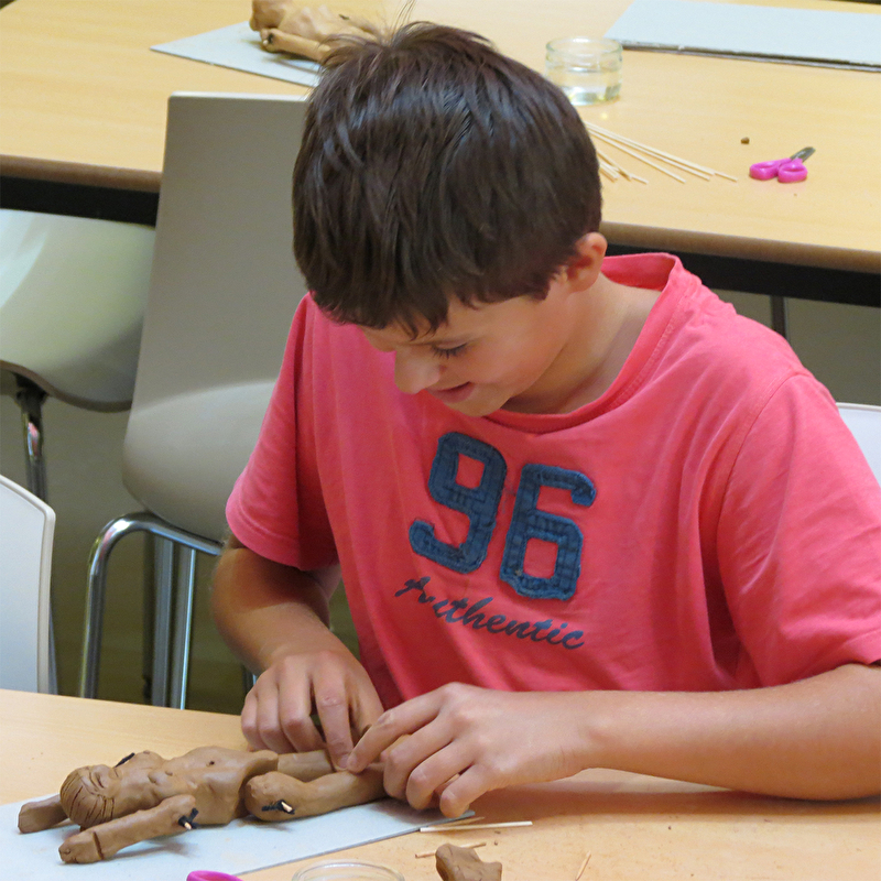 Avec quoi jouait-on il y a 2 000 ans ? Après avoir observé les jouets antiques du musée, les élèves passent à la pratique en fabriquant un personnage articulé en argile.