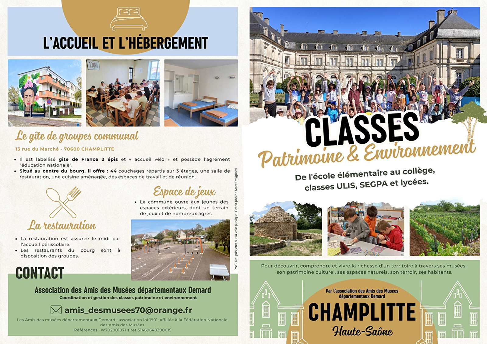 Les musées départementaux Demard proposent, en partenariat avec l'association des Amis des Musées, la possibilité pour les élèves et leurs enseignants de découvrir Champlitte et son patrimoine historique, scientifique, naturel et immatériel local sur plusieurs jours.
