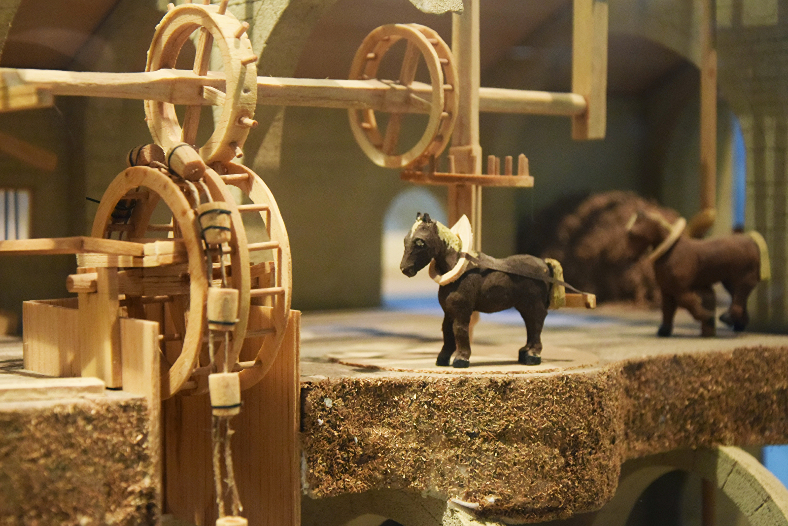 - la descente dans la galerie souterraine pour découvrir les 2 puits d'extraction d'eau salée et aborder plusieurs thématiques : les sciences et et l'architecture médiévale, découvrir comment une machine aide l’homme en observant un objet technique réel (roue et pompe hydraulique en fonctionnement)