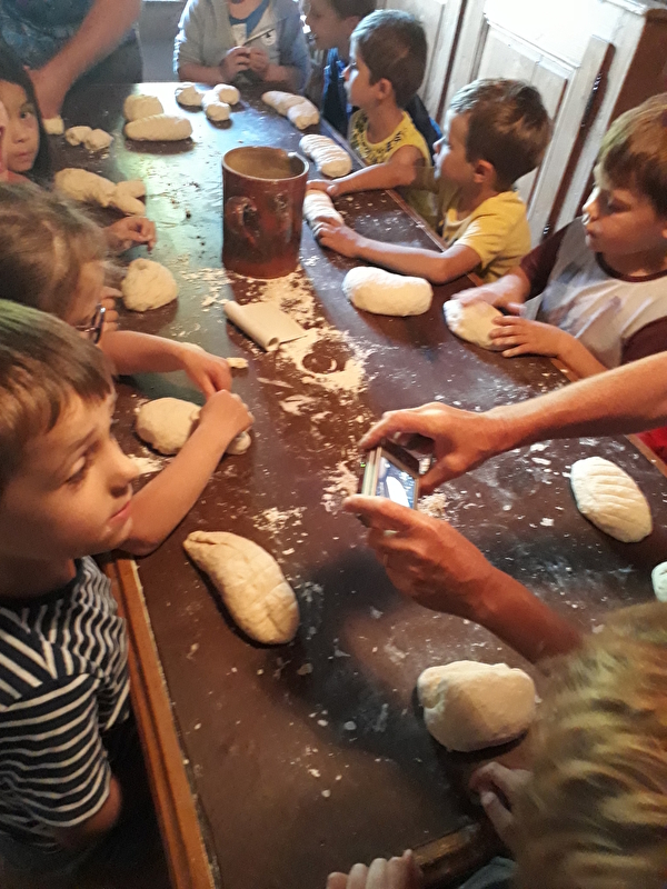 Cette activité permet de comprendre l’importance du pain dans notre alimentation et celle de nos ancêtres. Les élèves apprennent l’origine du pain et ses étapes de fabrication, ainsi que le fonctionnement d’un four à bois traditionnel (fabrication de la pâte, pétrissage, façonnage, enfournement et cuisson des pâtons). Ils repartent avec leur petit pain !