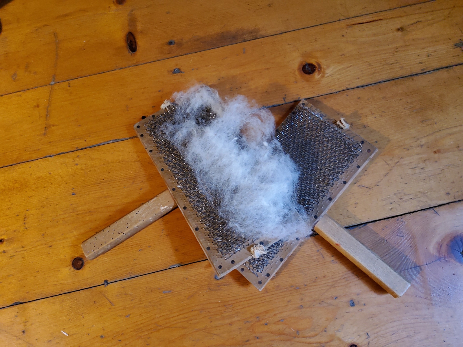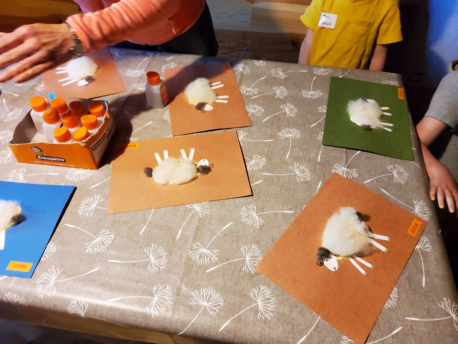 3-Atelier : carder la laine et fabriquer un mouton en laine, avec la laine cardée par les élèves (faire).
