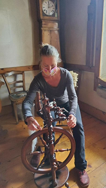 2-Démonstration de cardage de la laine, de filage au rouet (observer).