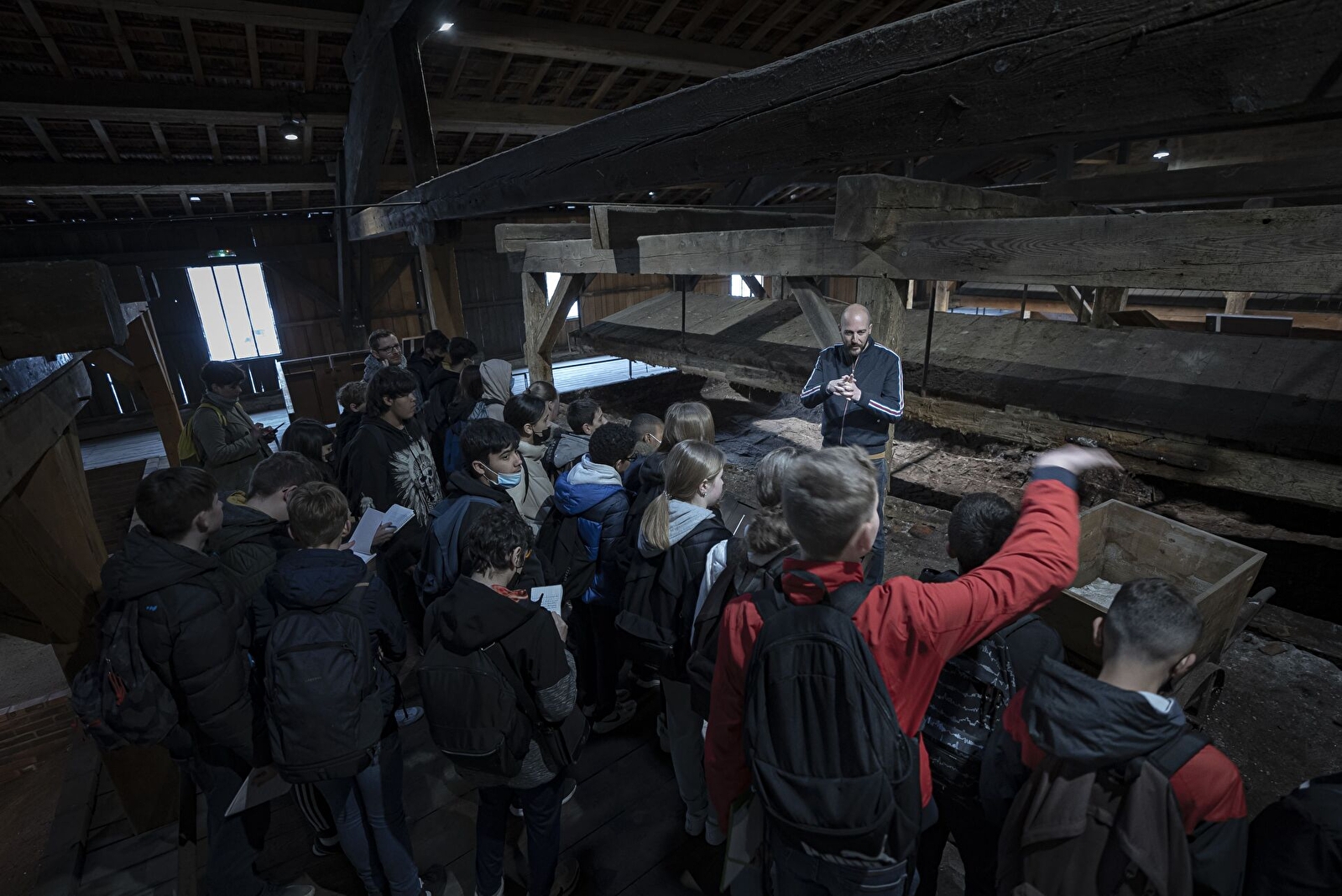 Grande Saline : au fil de la visite, le médiateur fait voyager les élèves dans l’histoire et l’architecture d’un site exceptionnel. Les travailleurs du sel, les sauniers, ont produit à la Grande Saline l’Or Blanc pendant plus de 1200 ans ! Au cours du temps, l’ingéniosité humaine a permis la mise en place de remarquables systèmes techniques, encore opérationnels aujourd'hui, pour puiser l’eau salée et la faire évaporer dans d'imposantes poêles à sel. Les élèves découvrent l’industrie du sel ignigène (en chauffant l’eau salée). Ils appréhendent la longévité extraordinaire de cette saline à travers des repères chronologiques et observent les spécificités techniques des mécanismes employés pour puiser l’eau salée et la chauffer.