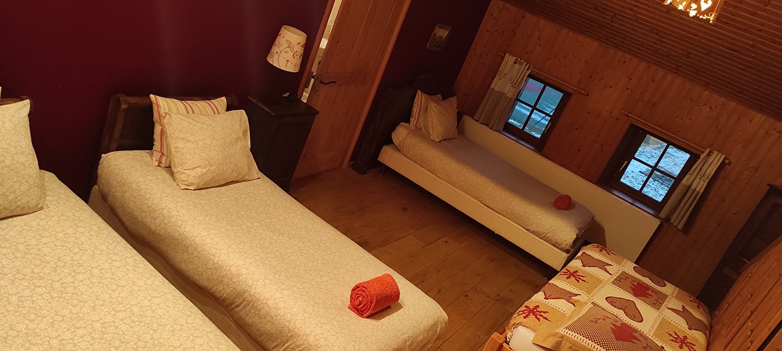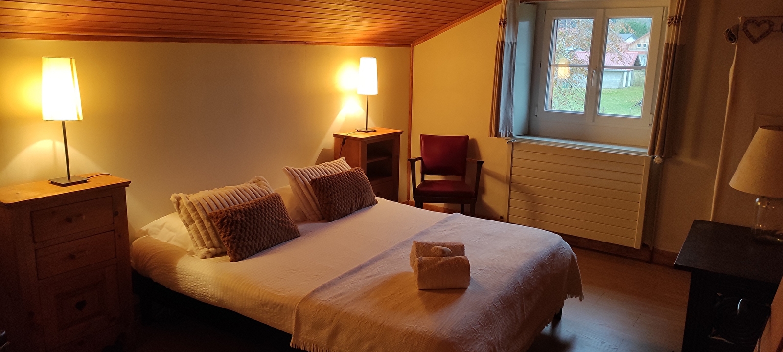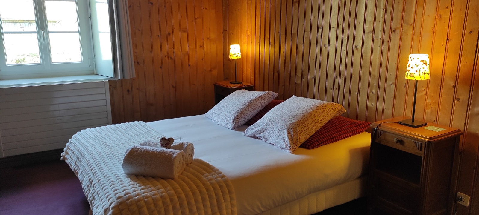 Nous disposons de 5 chambres, toutes dotées de salle de bain et sanitaires privés. Nous pouvons accueillir jusqu'à 15 personnes.