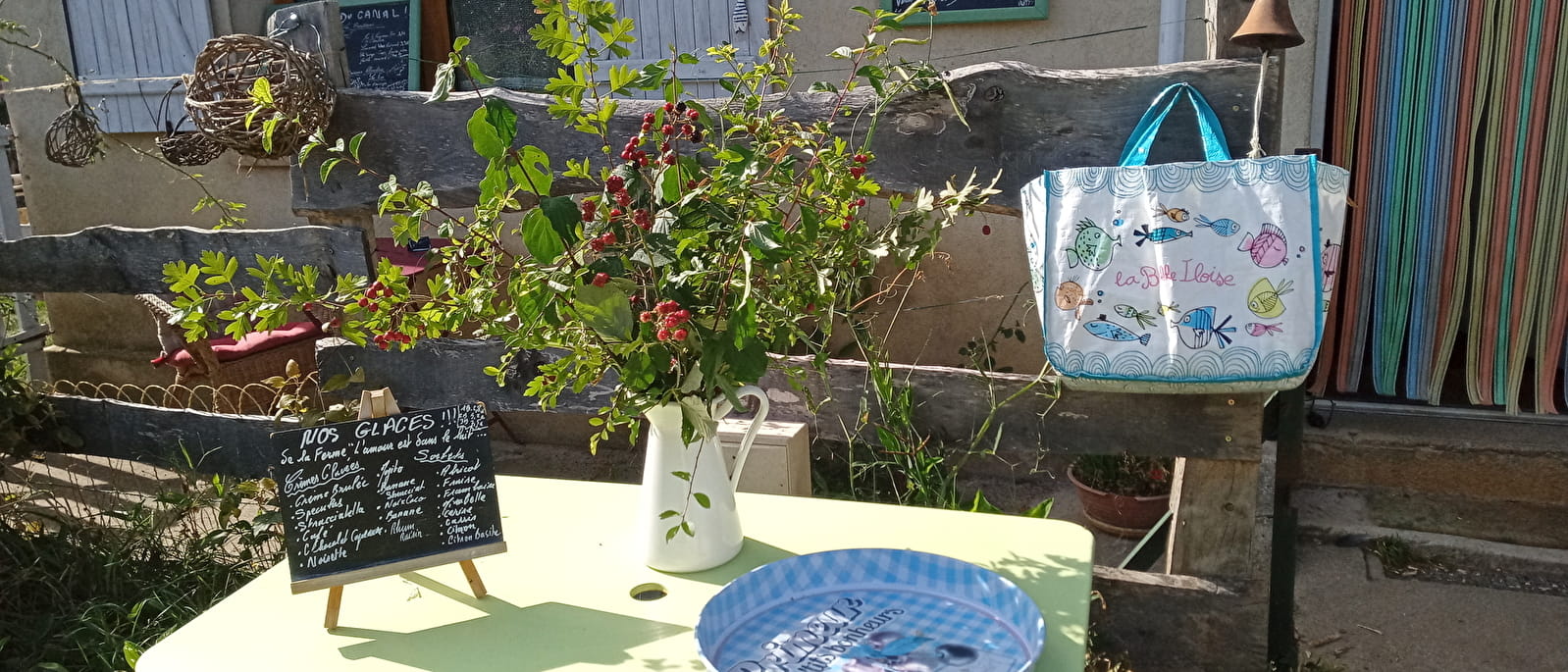 Assiettes thématiques aux légumes du moment, charcuterie et fromages locaux, galettes ou gaufres fait maison, glaces de la ferme, ...