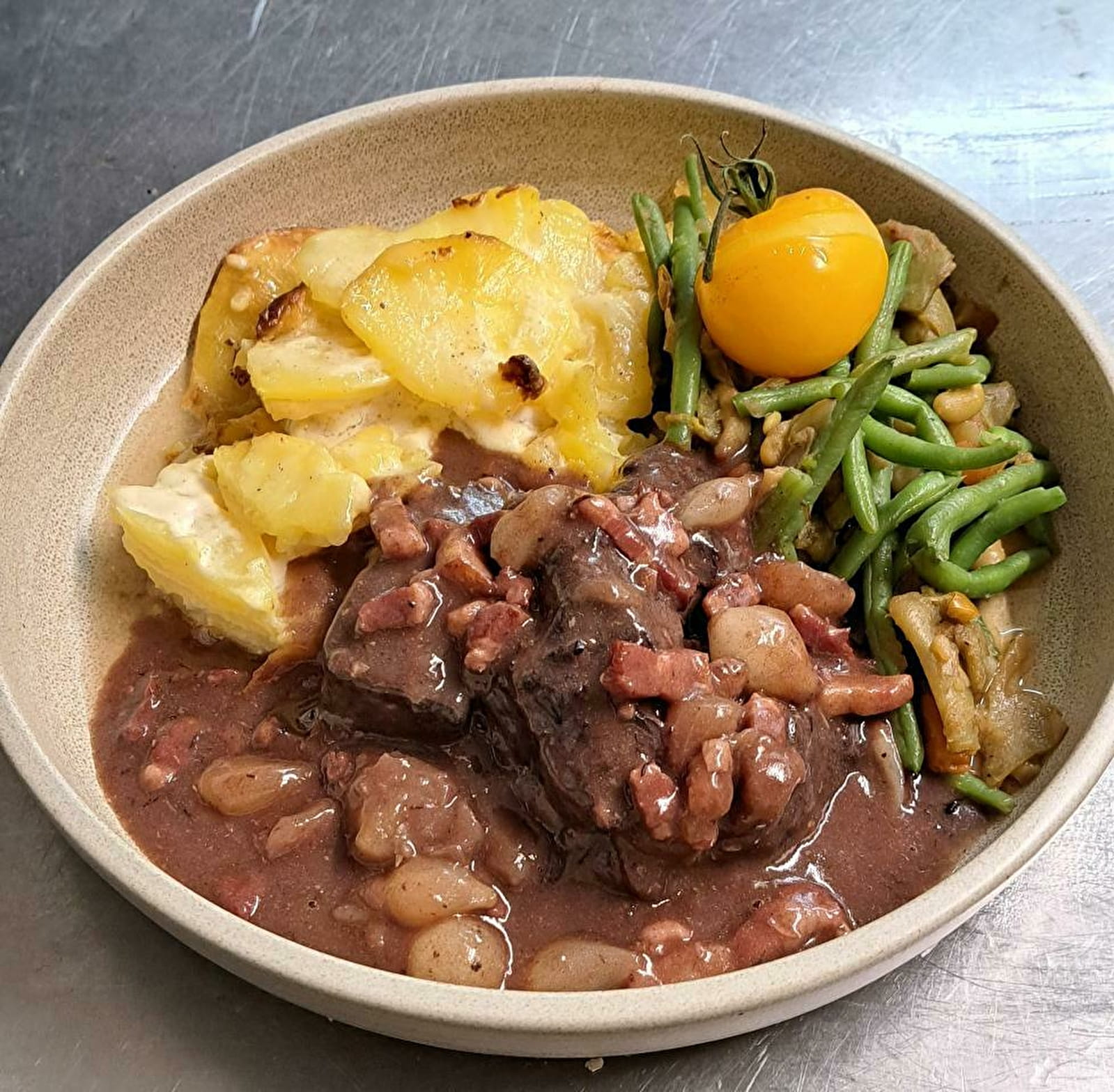 Avant tout passionnés par notre métier nous proposons une restauration traditionnelle à partir de produits locaux et nous proposons également nos prestations de type traiteur.