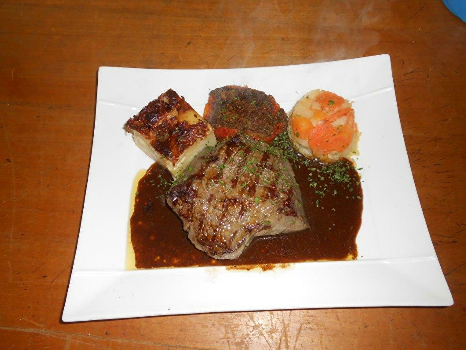 Notre carte est composée de plats simples à base de produits locaux et fermiers : le poulet fermier, l’andouillette, le boeuf bourguignon de Charolais...