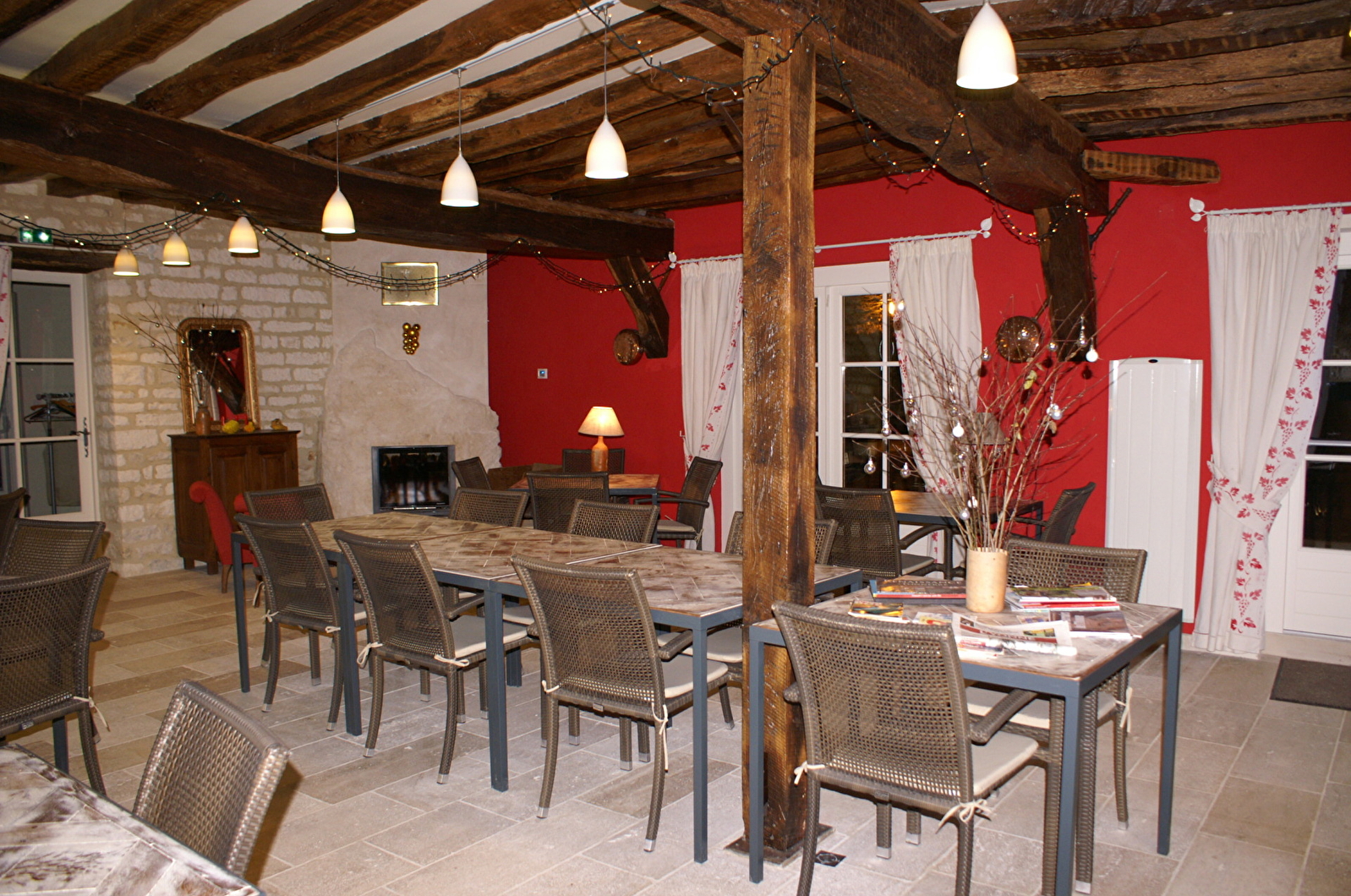 Nous vous recevons dans une magnifique salle Bourguignonne et sa cheminée, en terrasses ensoleillées ou dans notre jardin ombragé.