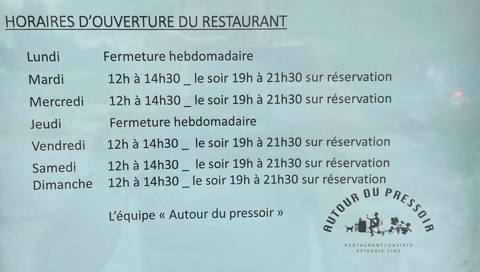 Fermé le(s) : Lundi, Jeudi