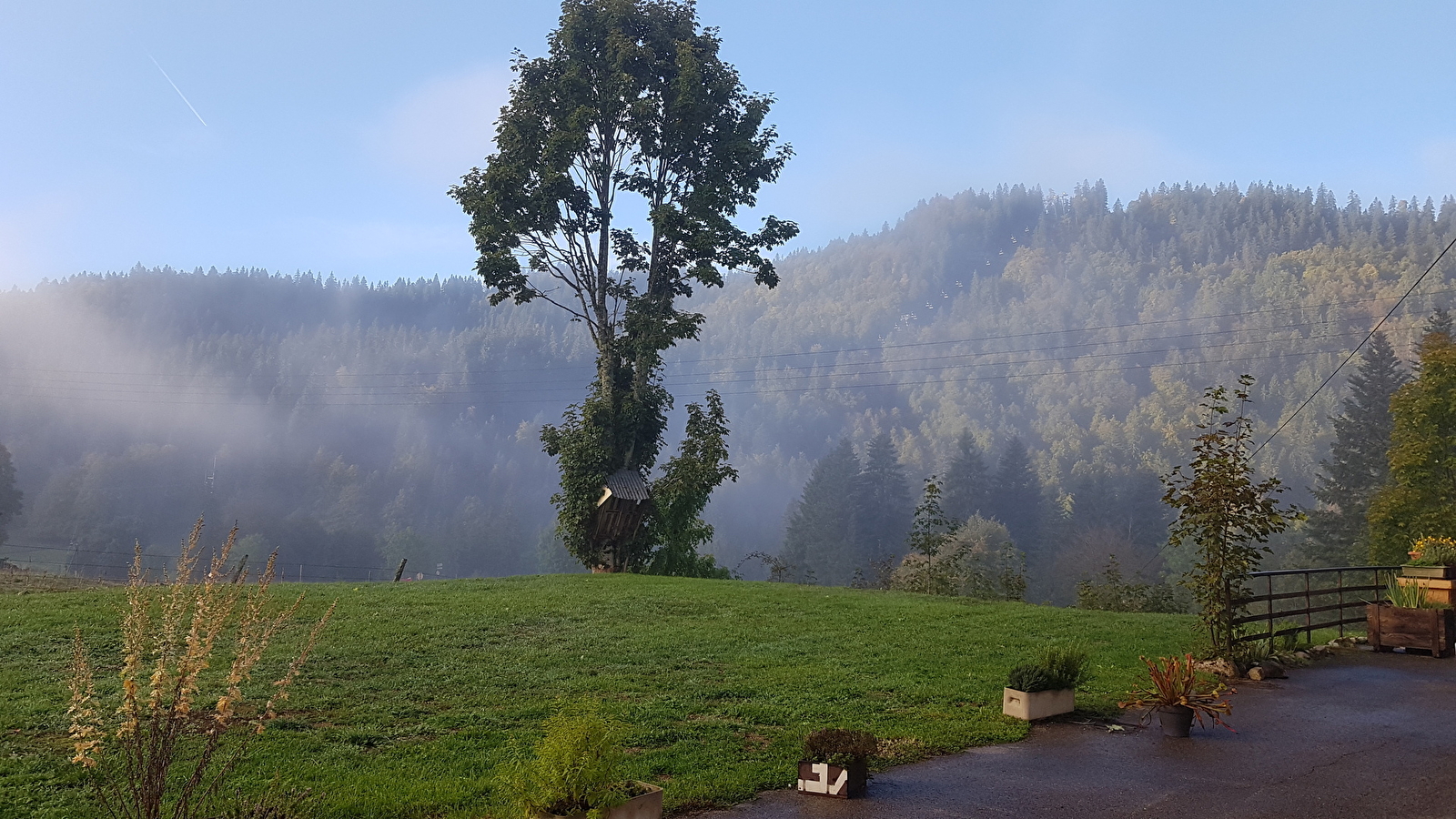 A 4 km en dehors des Rousses, entre la forêt du Massacre et la Givrine, grande terrasse ombragée au calme, vue privilégiée sur la Dôle.