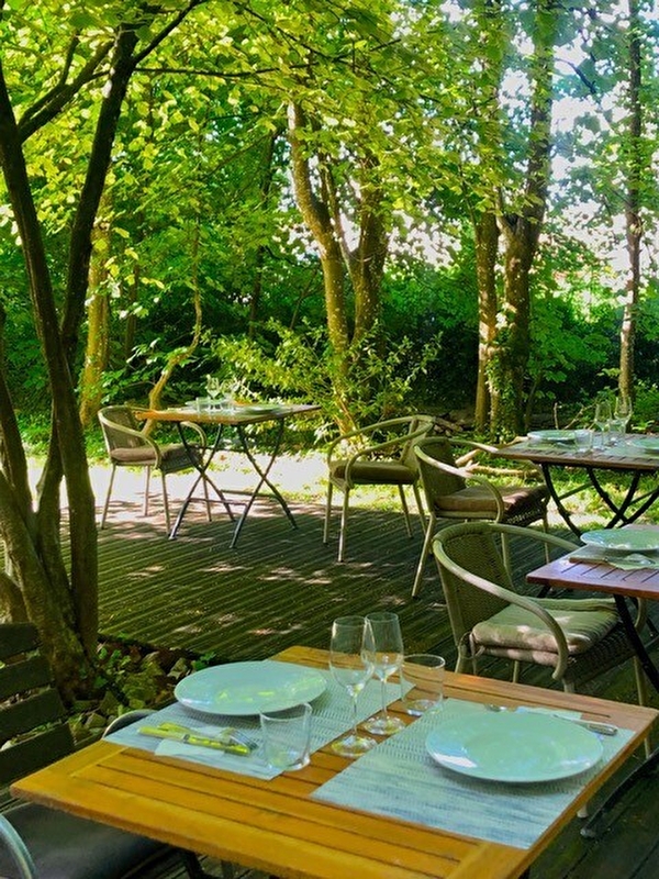 L’été, vous dînez en TERRASSE à l’ombre d’un noisetier et au bord de la rivière.