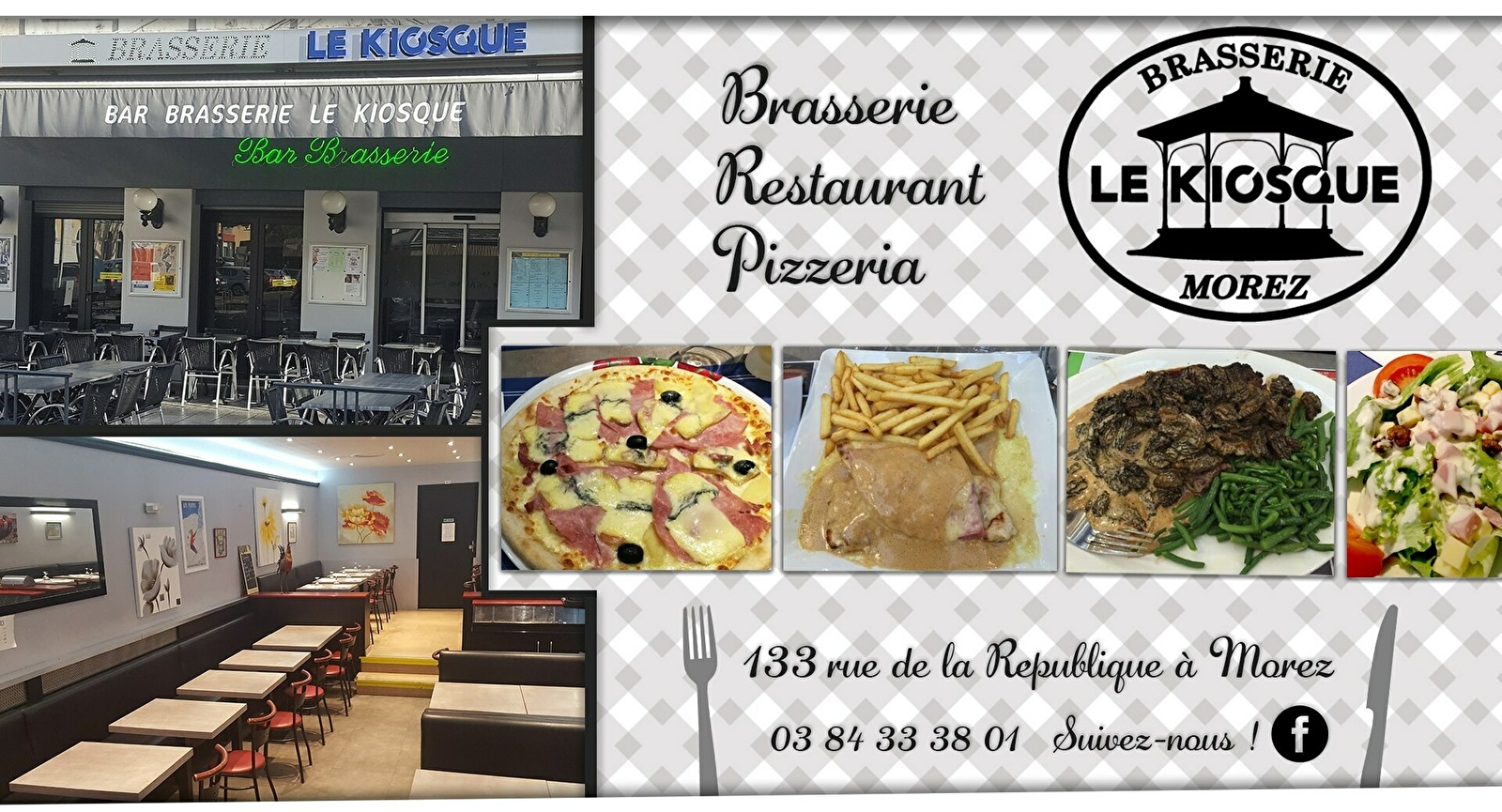La brasserie Le kiosque à Morez vous propose des pizzas à emporter.