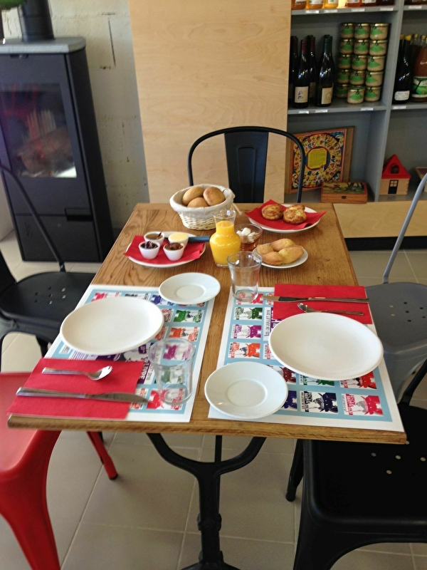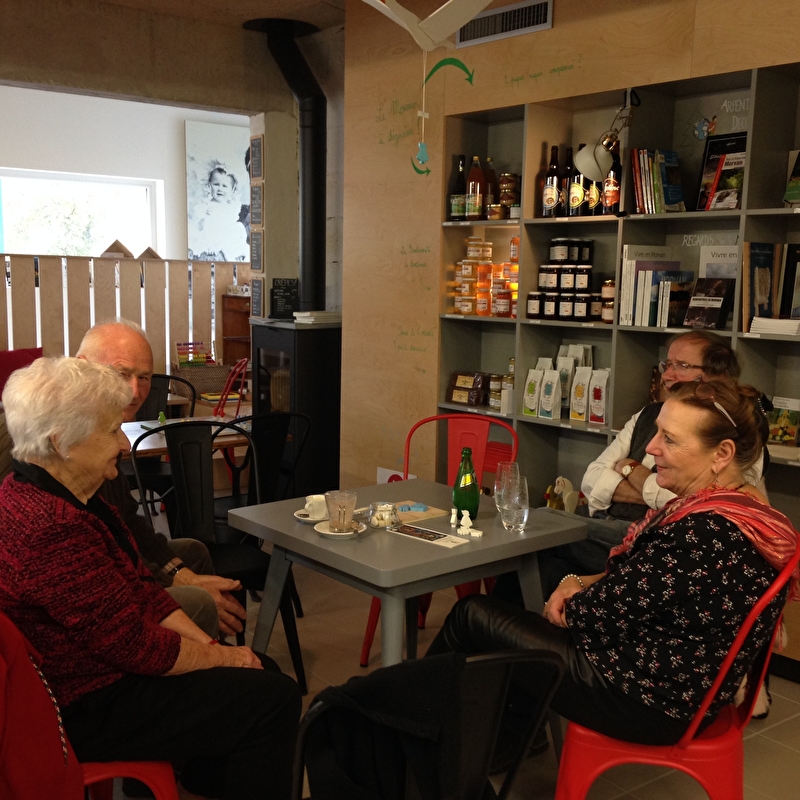 Le café dispose d'un espace bibliothèque et d'une boutique-librairie avec produits régionaux, artisanat local, livres et jeux pour les petits et les grands.