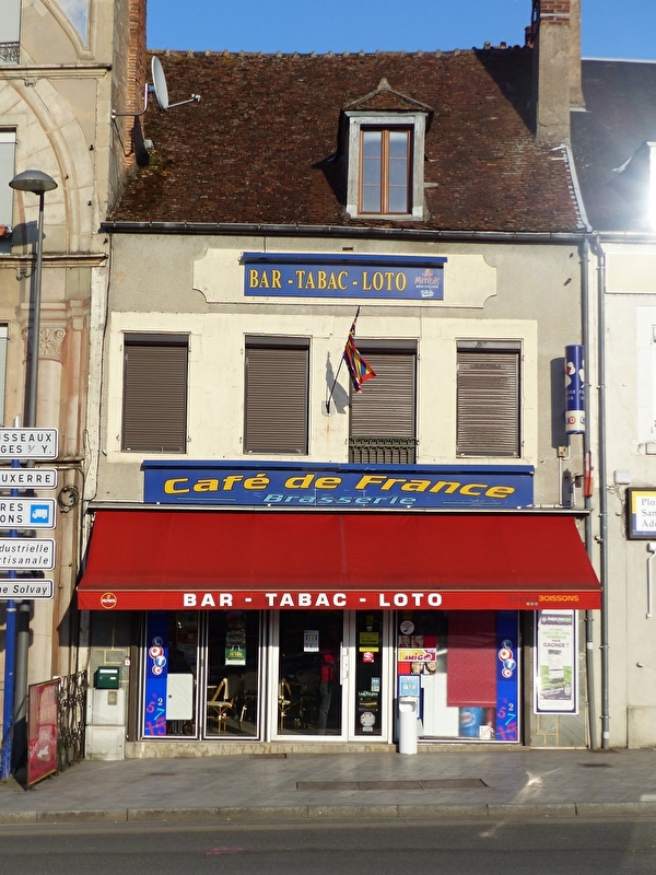 Café chaleureux juste en face de l'église de Bethléem à Clamecy, proposant régulièrement des animations musicales.