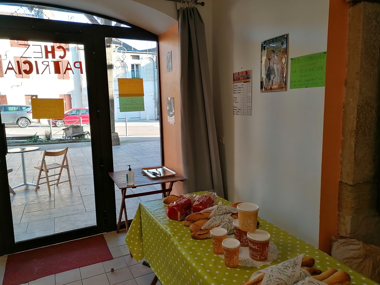 Plus qu'un simple café, Chez Patricia est un véritable lieu de vie. Chez Patricia vous propose plusieurs boissons chaudes ou froides à consommer sur place. Du pain frais est également disponible (à commander au préalable), une épicerie de dépannage est aussi proposée.