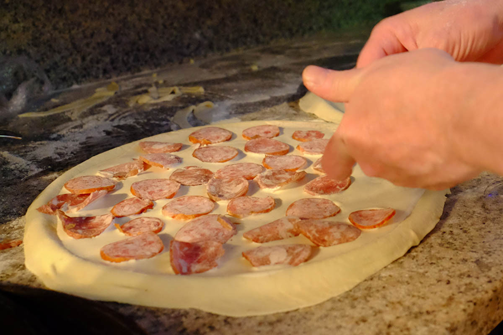 Chez Sandrine, on vous propose un choix de plus de 25 pizzas au feu de bois, nems et tartines accompagnées de salade verte à emporter. Plats péparés à emporter chaud ou froid : tartiflette salade, chili con carne - riz, poulet noix de cajou et riz thaï. Tout est fait maison.