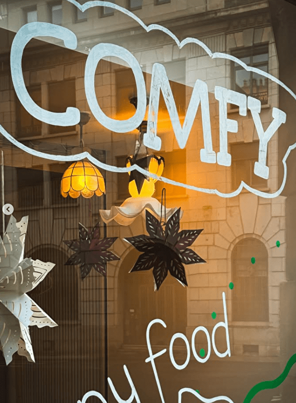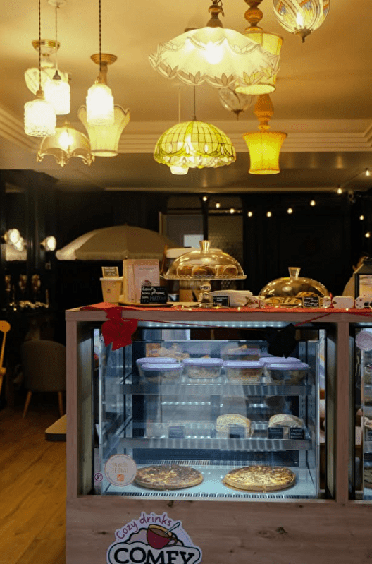 Comfy est un salon de thé et pâtisserie situé Grande Rue à Besançon. Le concept s'inspire directement de l'ambiance des coffee shops américains avec une décoration rappelant la série "Friends". L'espace propose des banquettes, des fauteuils confortables et une ambiance lumineuse travaillée. La production artisanale associe pâtisseries françaises et américaines faites maison. L'établissement vise à offrir un cadre décontracté et convivial pour une pause gourmande en cœur de ville.