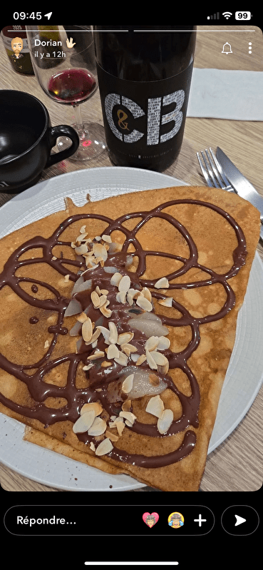 Crêperie Bretonne ! Vous pourrez y déguster différente galettes de sarrasin et crêpes au froment dans la pure tradition bretonne. Le fait maison est de rigueur avec des produits frais, locaux et bretons. Un belle carte de cidres, poirés, bières, whisky, et autre boissons typiquement bretonne et importé de Bretagne.