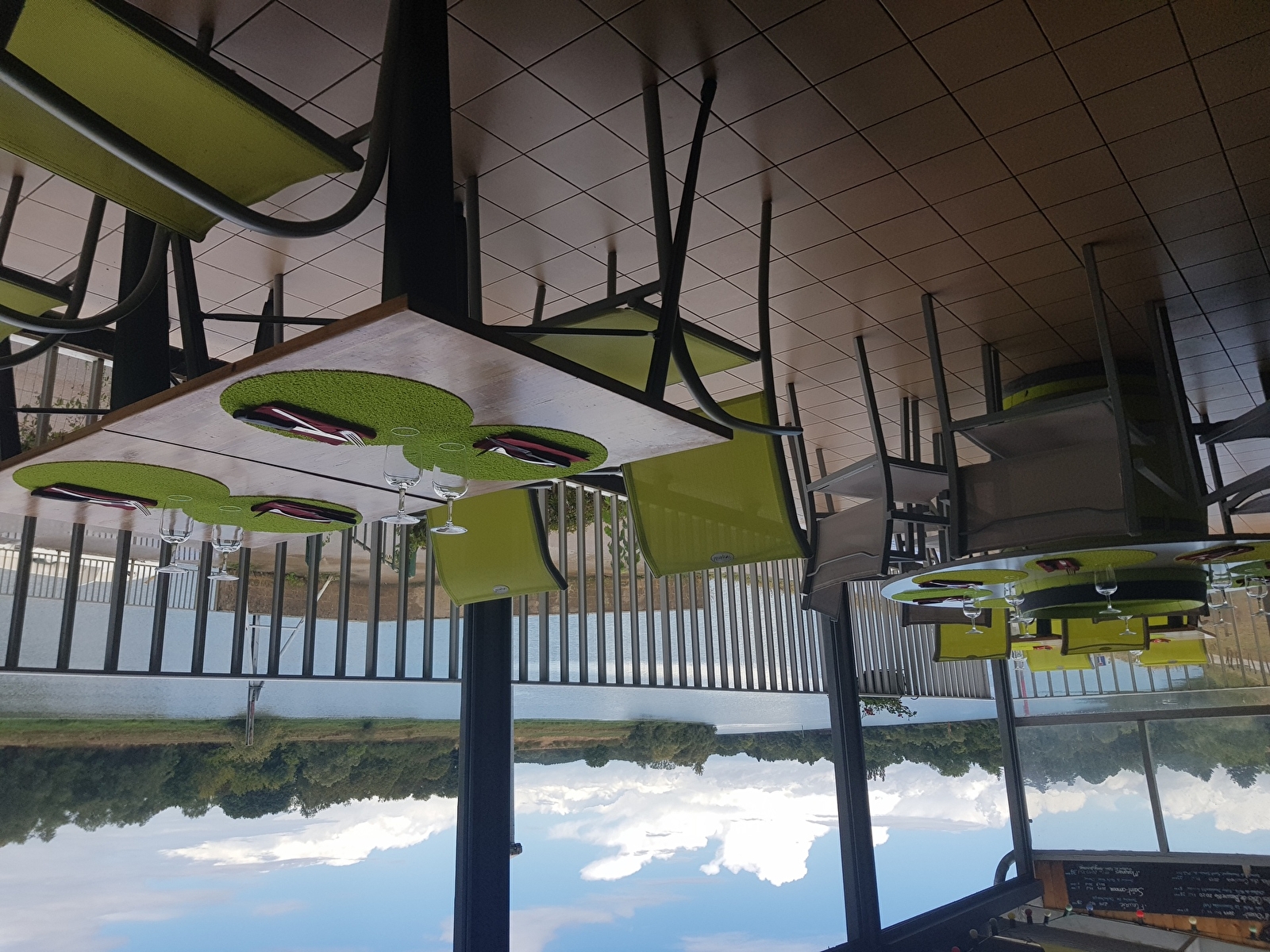 Terrasse en bord de Saône le long de la voie bleue.