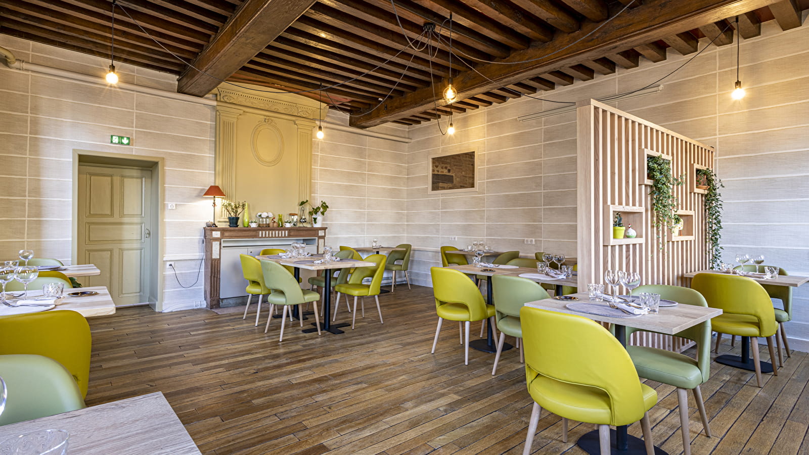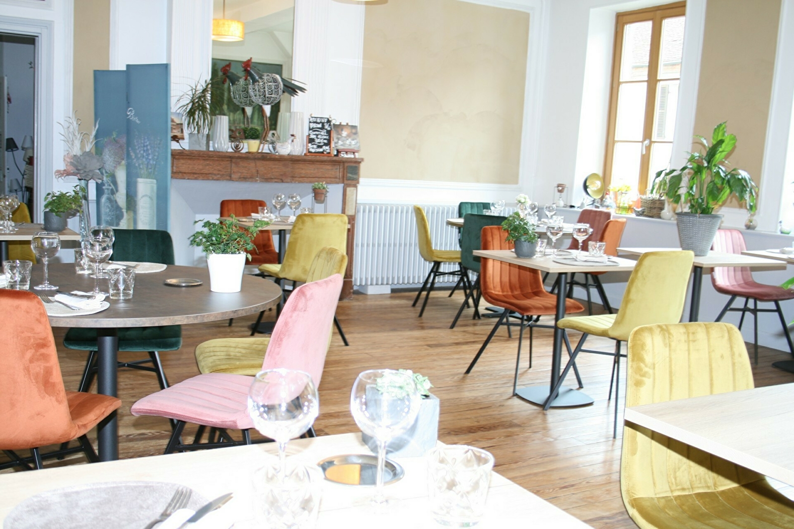 Le restaurant reste dans le style de la maison. Poutres apparentes et parquets en chêne d'origine lointaine. Cheminées. Cuisine de tradition, élaborée avec des produits frais au gré des saisons. Référence dans le Gault & Millau, Guide Michelin. Terrasse d'été.
