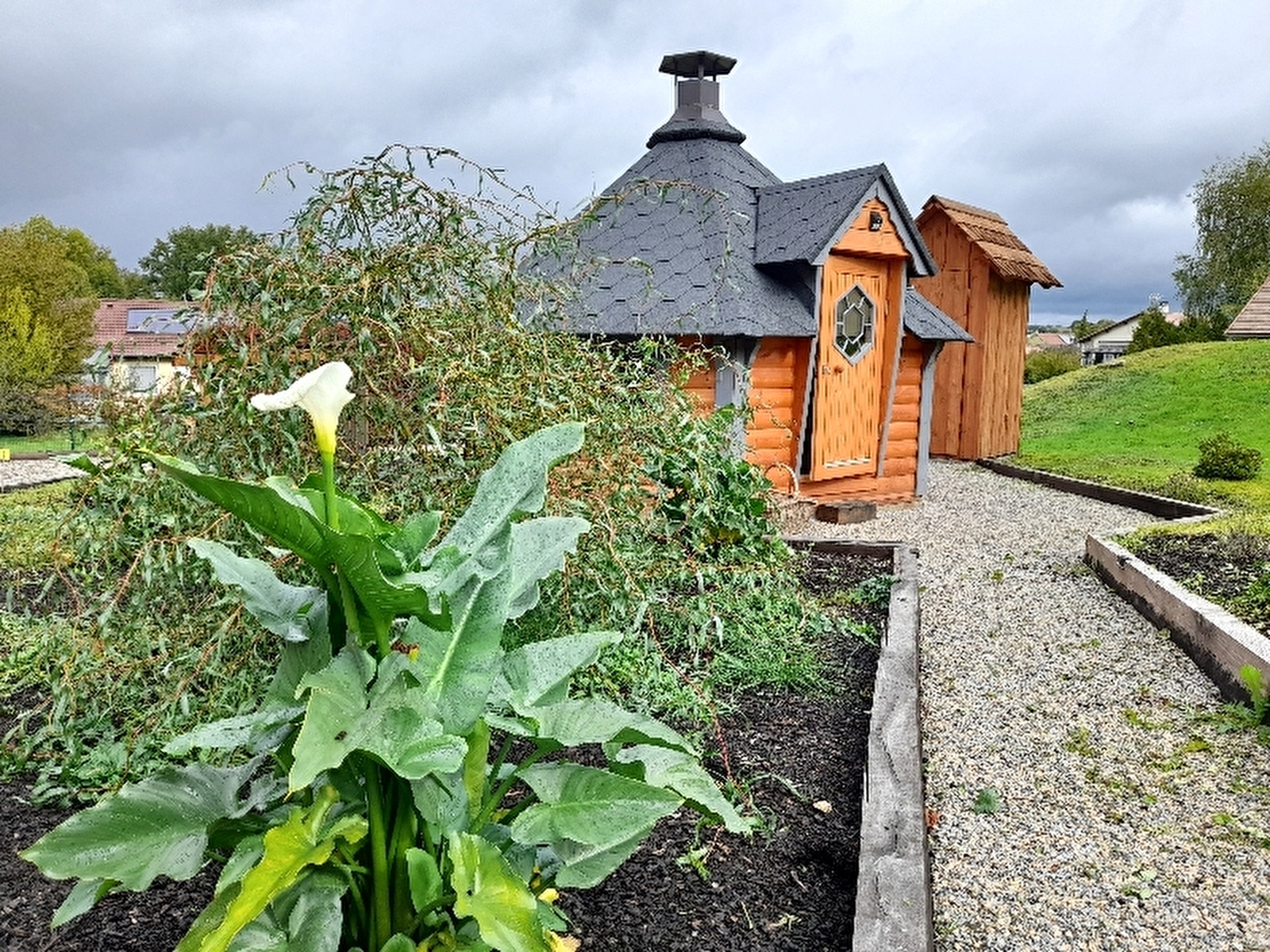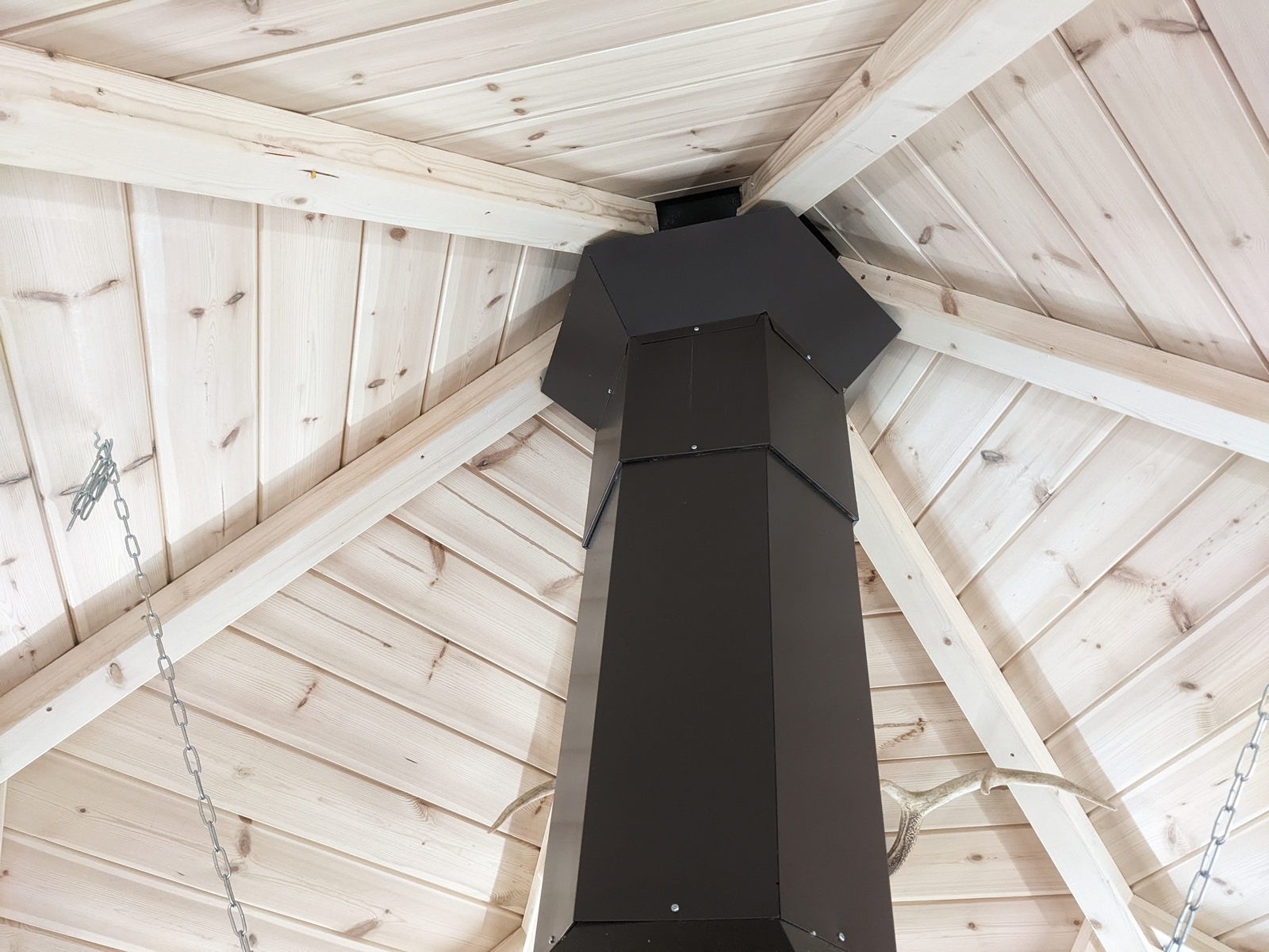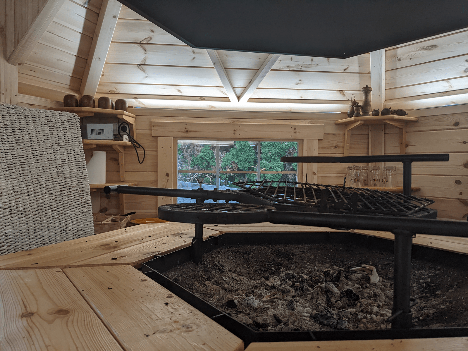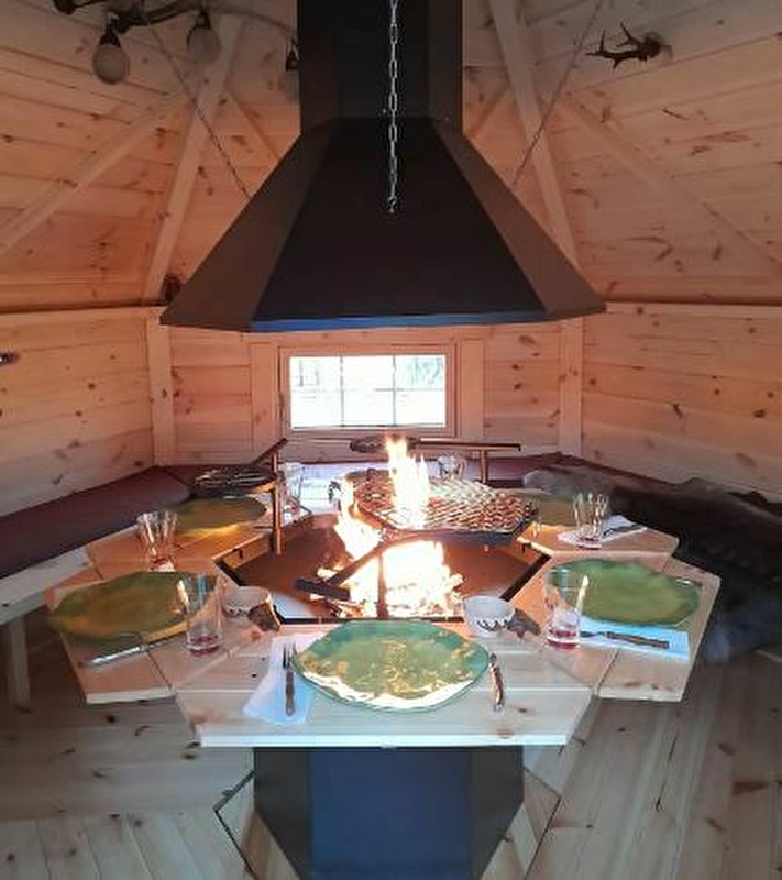 le chef vous propose un repas en toute convivialité dans un véritable kota-grill finlandais .