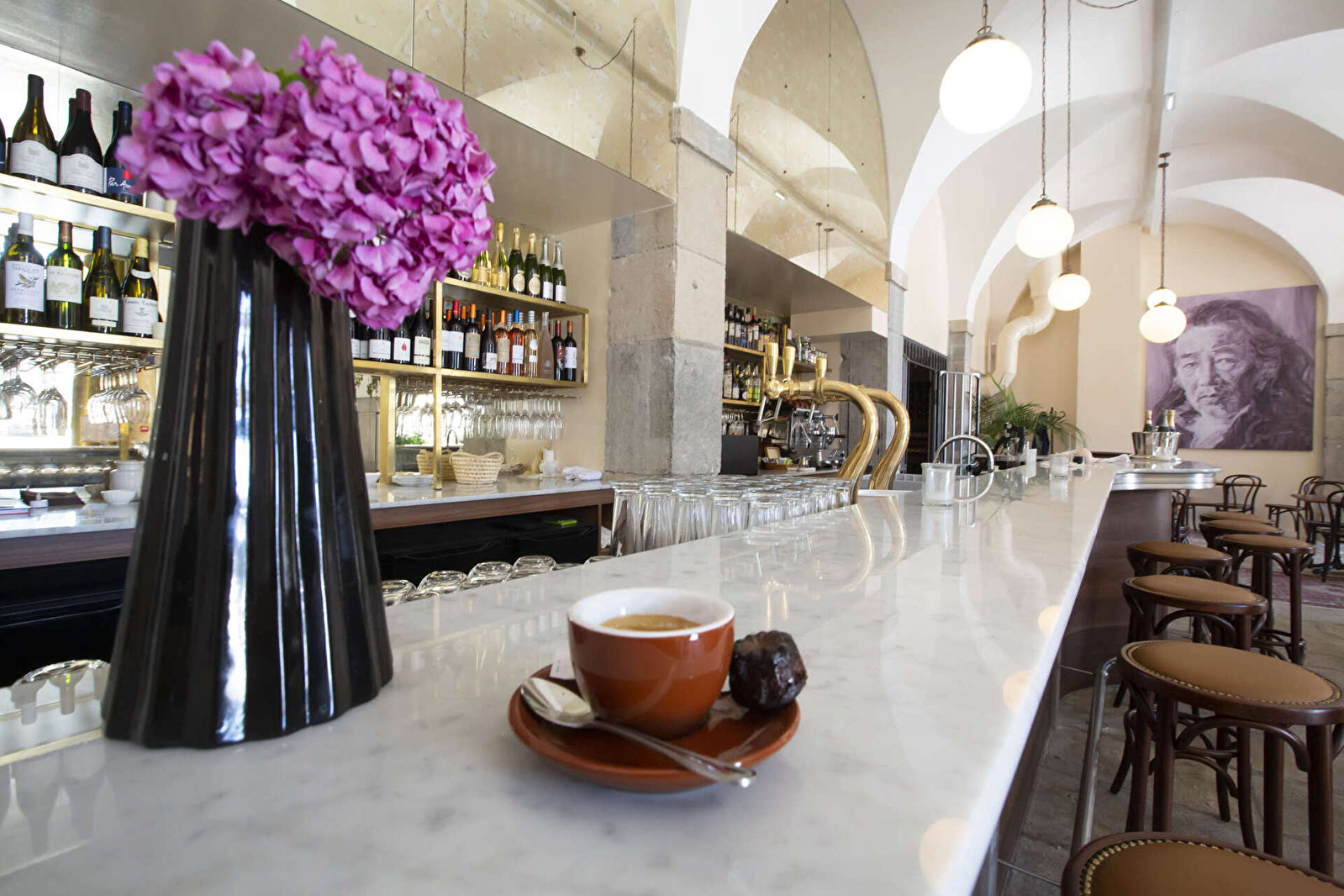 Bordant la place de la Révolution, la Buvette, bar à vin, occupe l’ancien conservatoire de musique en plein cœur de ville. Le cadre ? Vieilles dalles au sol, long bar en marbre, portrait géant de Gustave Courbet, miroirs, mobilier vintage... caveau de dégustation cosy et une vaste terrasse très appréciée. Pour prolonger vos moments de dégustations de vins, cocktails ou champagnes, le chef vous concocte suivant son inspiration de belles assiettes de charcuteries et de fromages, œufs mimosa, tartare de bœuf bio, rillettes de poissons fumés...